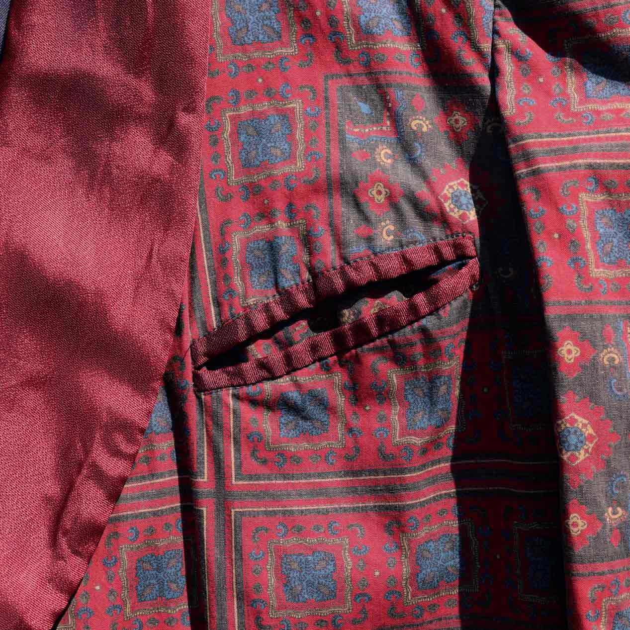 MODEL : DRA C. MATTHESS ペイズリープリント コットンスモーキングガウン MANUFACTURE : --- AGE : 50-60's SIZE : L COLOR : バーガンディ MATERIAL : --- (おそらくコットン 100%) COMMENT : 50~60年代、DRA C. MATTHESSのスモーキングガウンです。
