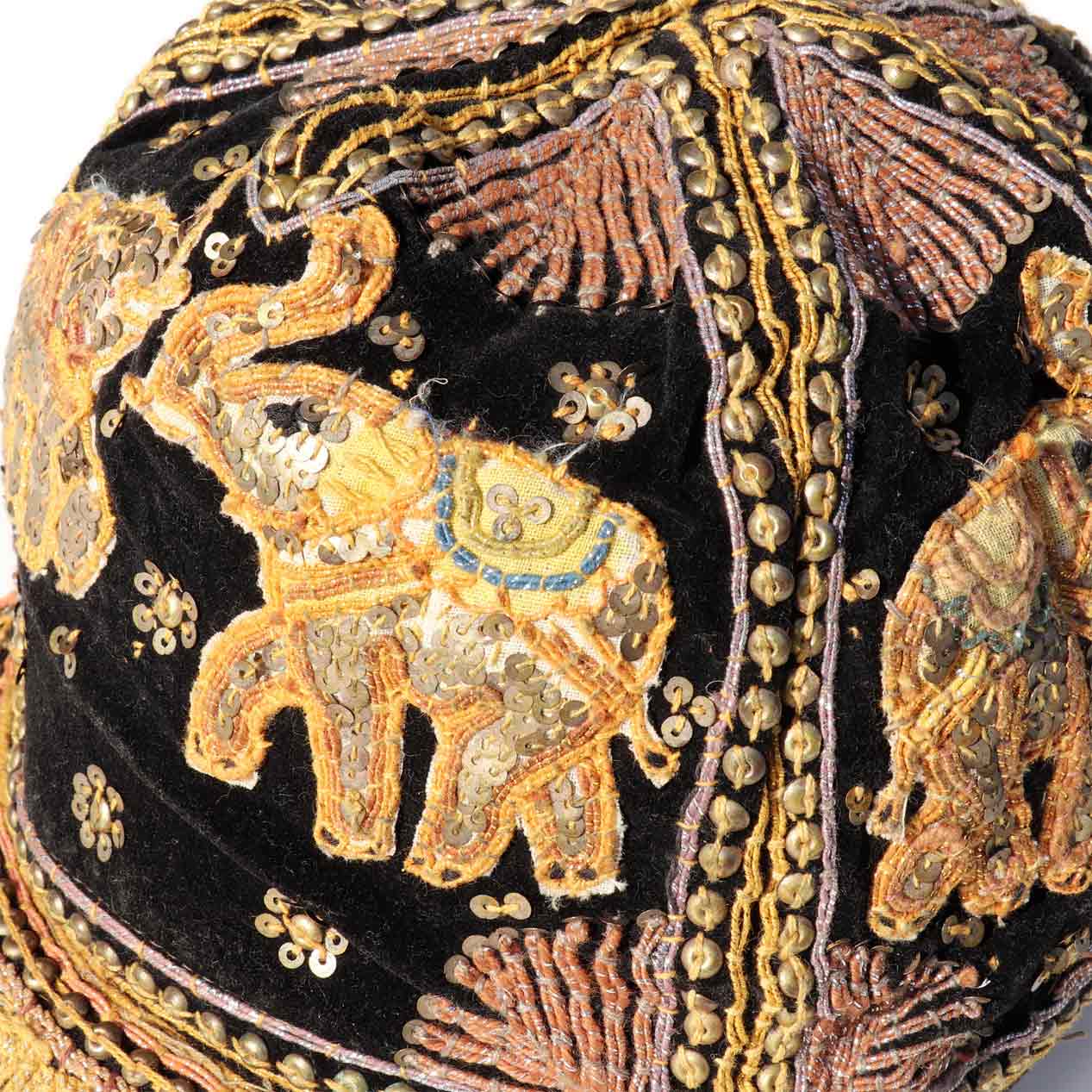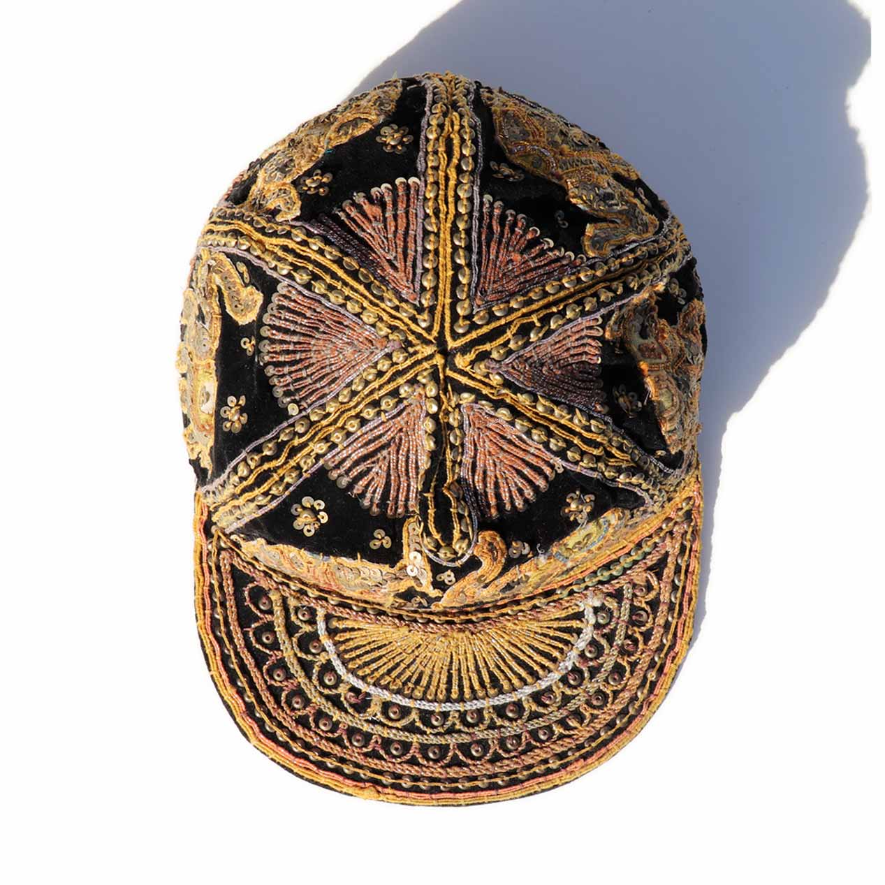ベルベット×スパンコールの相性抜群、豪華な刺繍が目を引くスパンコールキャップ。