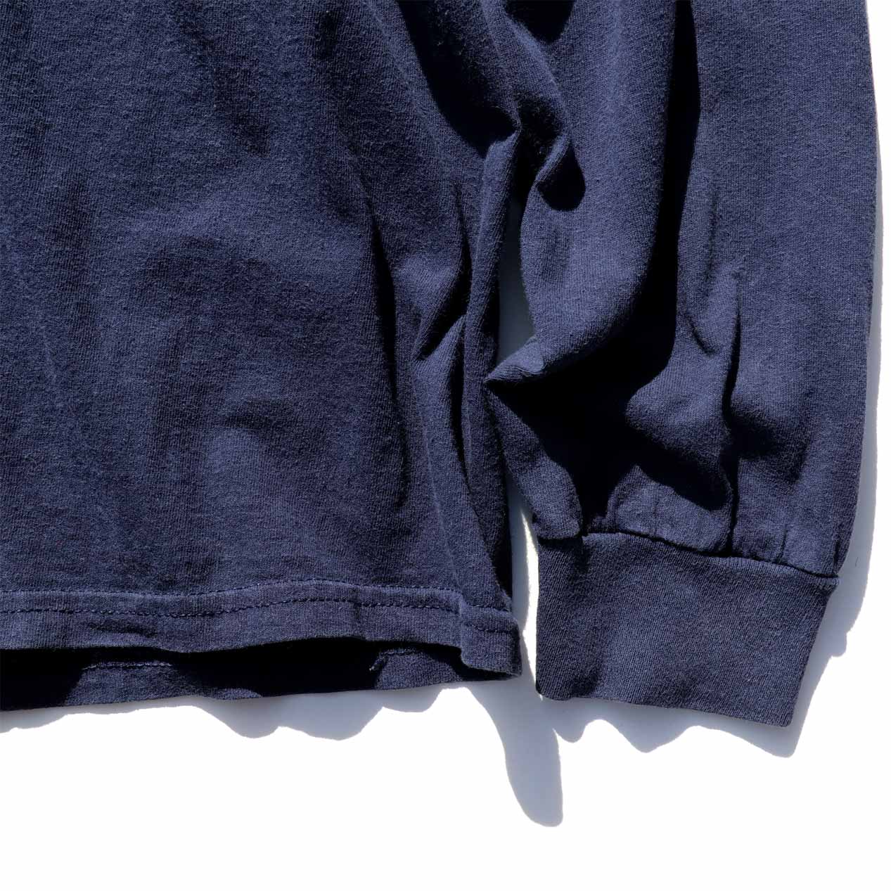 縫製はダブルステッチ、袖先はリブ仕様です。