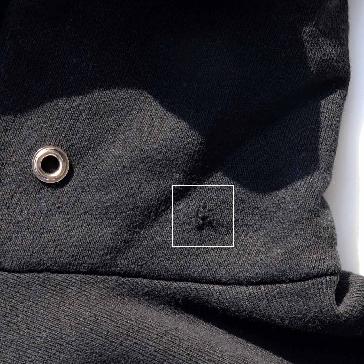 ・フロント、フードに穴、フード紐欠損