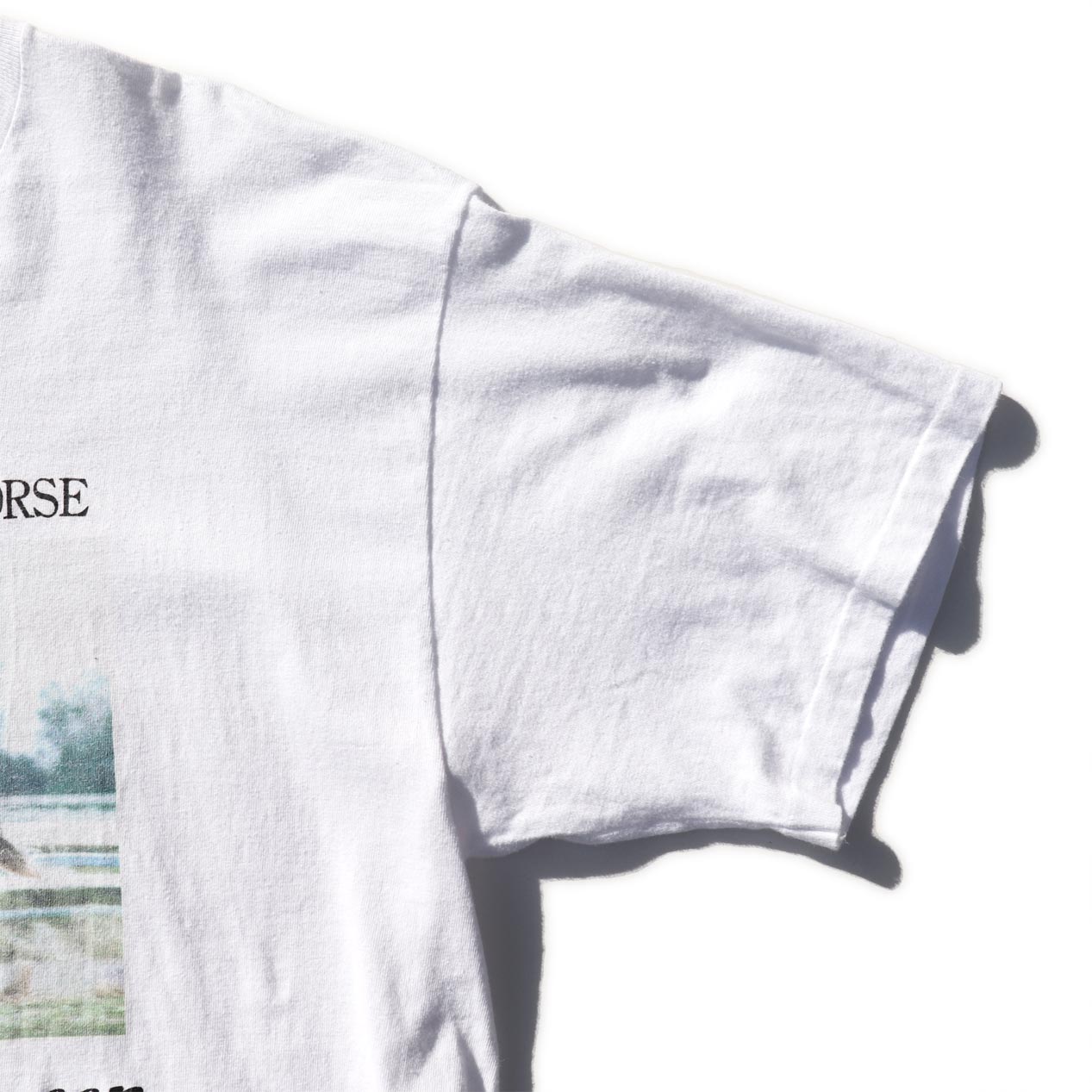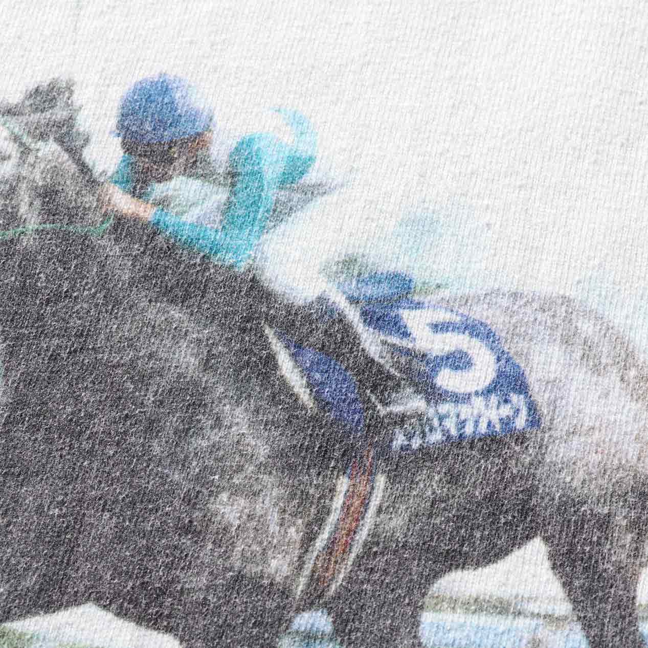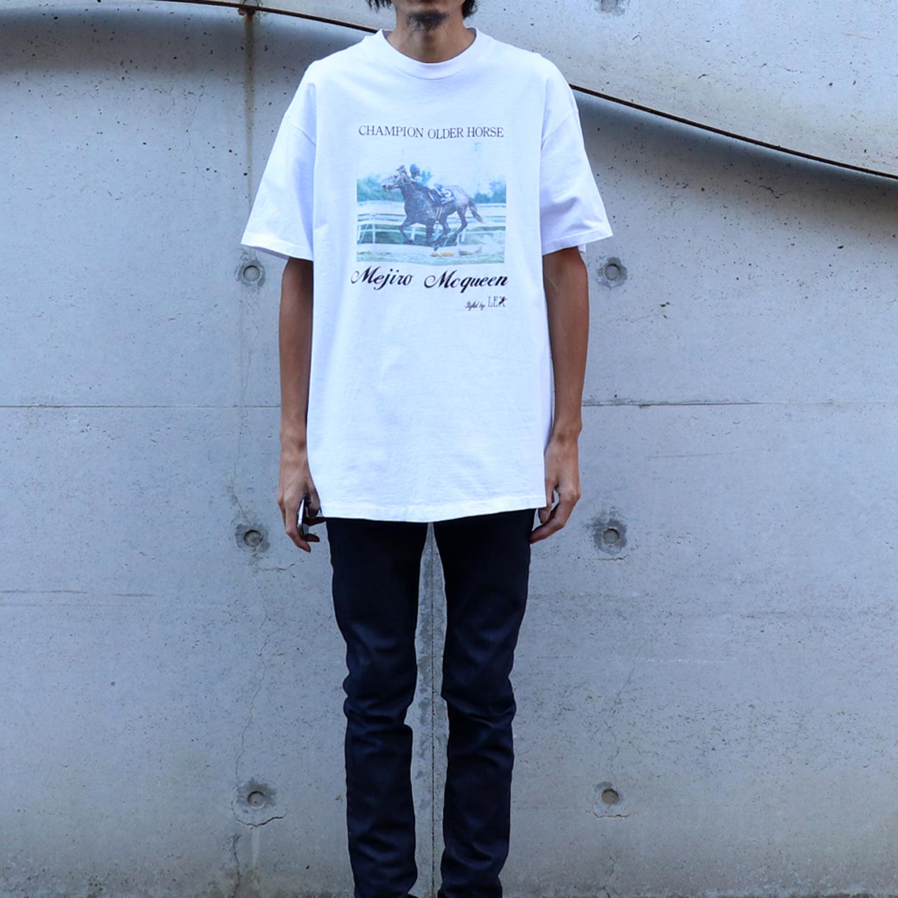 MODEL : TAKE YUTAKA ”MEJIRO MCQUEEN” プリントTシャツ MANUFACTURE : Made In U.S.A. AGE : 90's SIZE : L COLOR : ホワイト MATERIAL : コットン 100% COMMENT : 90年代、メジロマックイーンのプリントTシャツです。