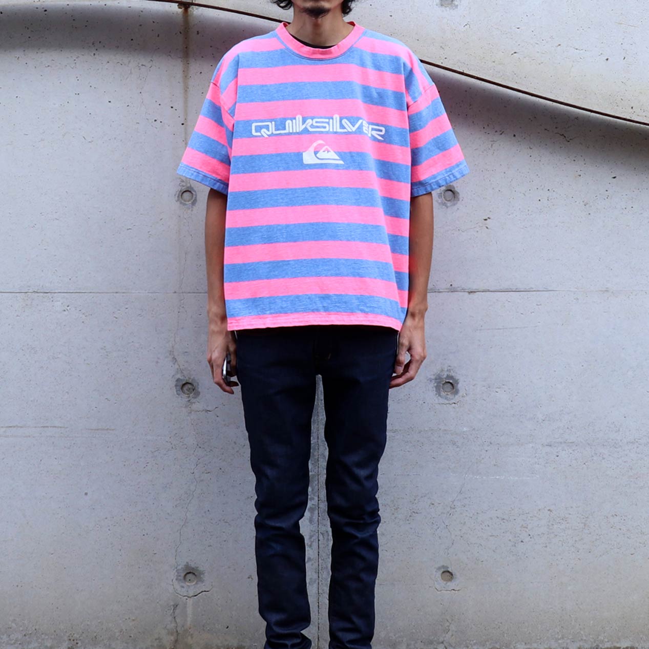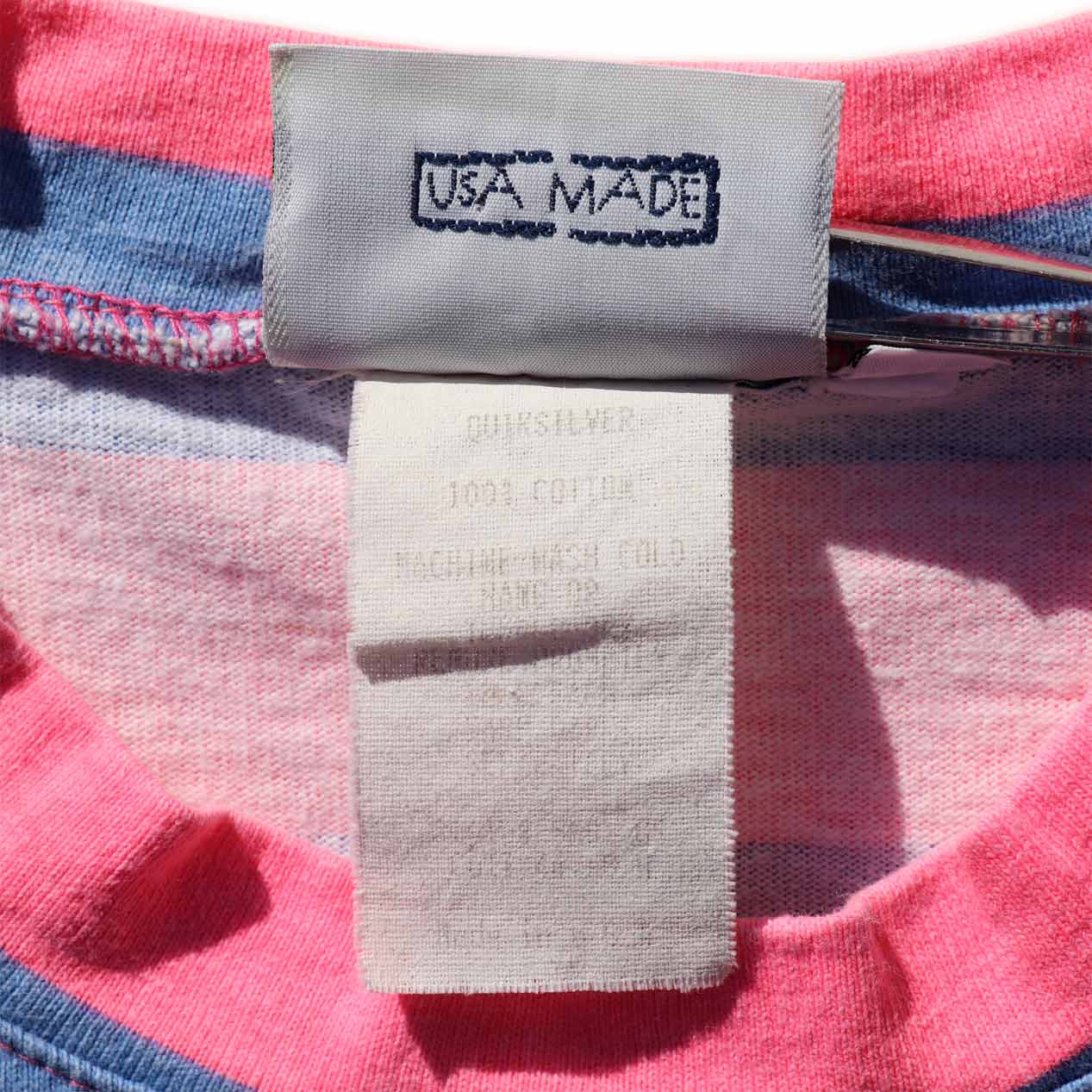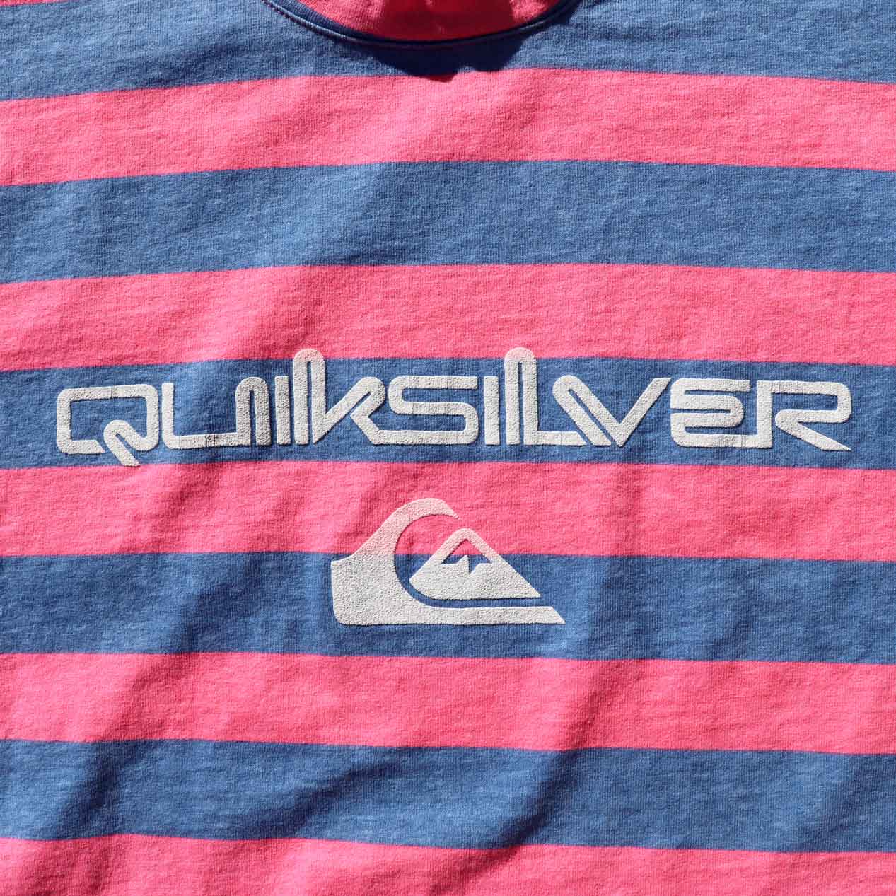 MODEL : QUIKSILVER ピンク×ブルー プリントボーダーTシャツ MANUFACTURE : Made In U.S.A. AGE : 80’s SIZE : M COLOR : ピンク×ブルー MATERIAL : コットン 100% COMMENT : 80年代、クイックシルバーのボーダーTシャツです。