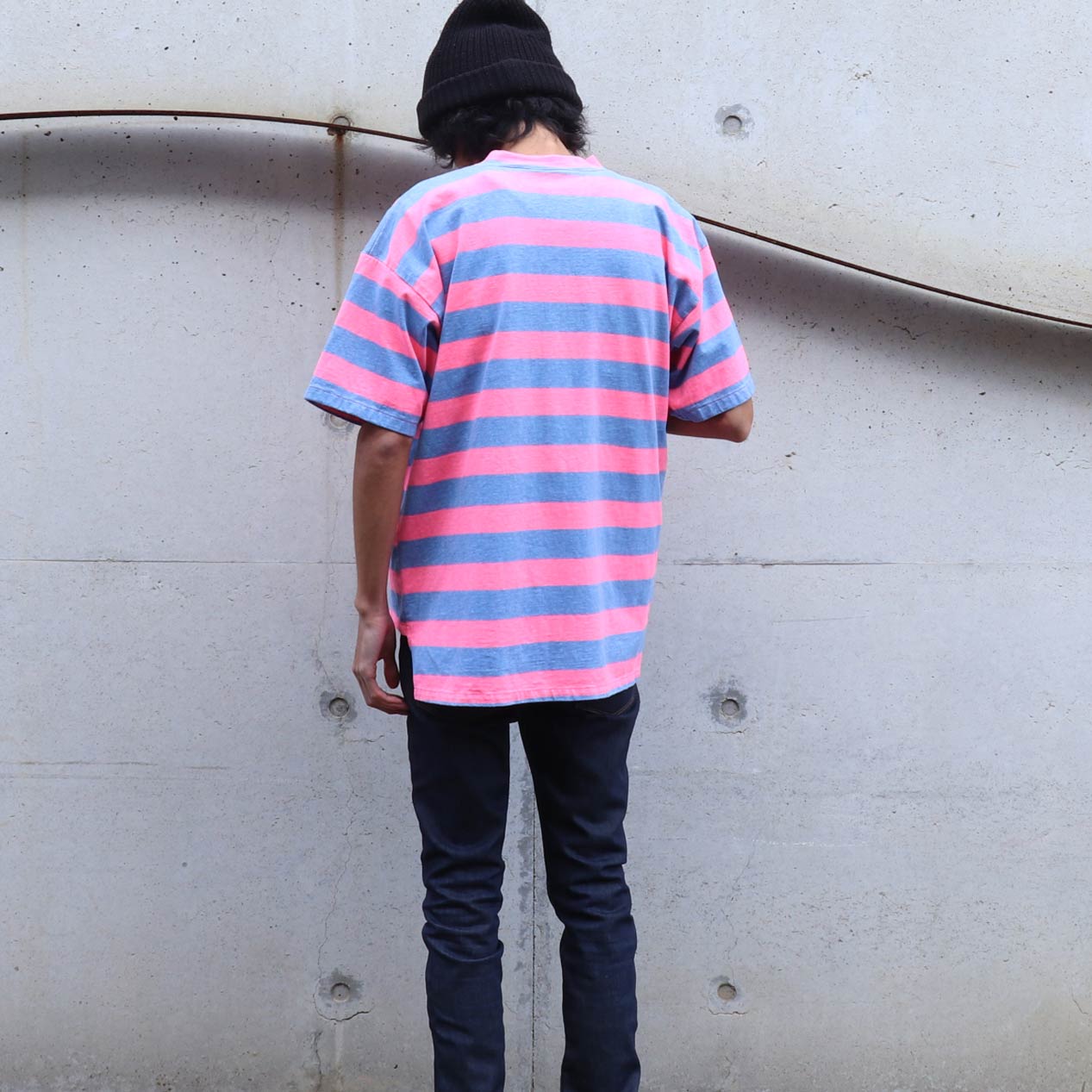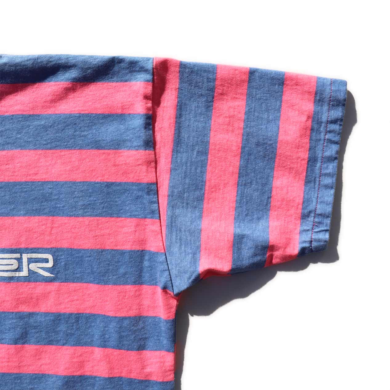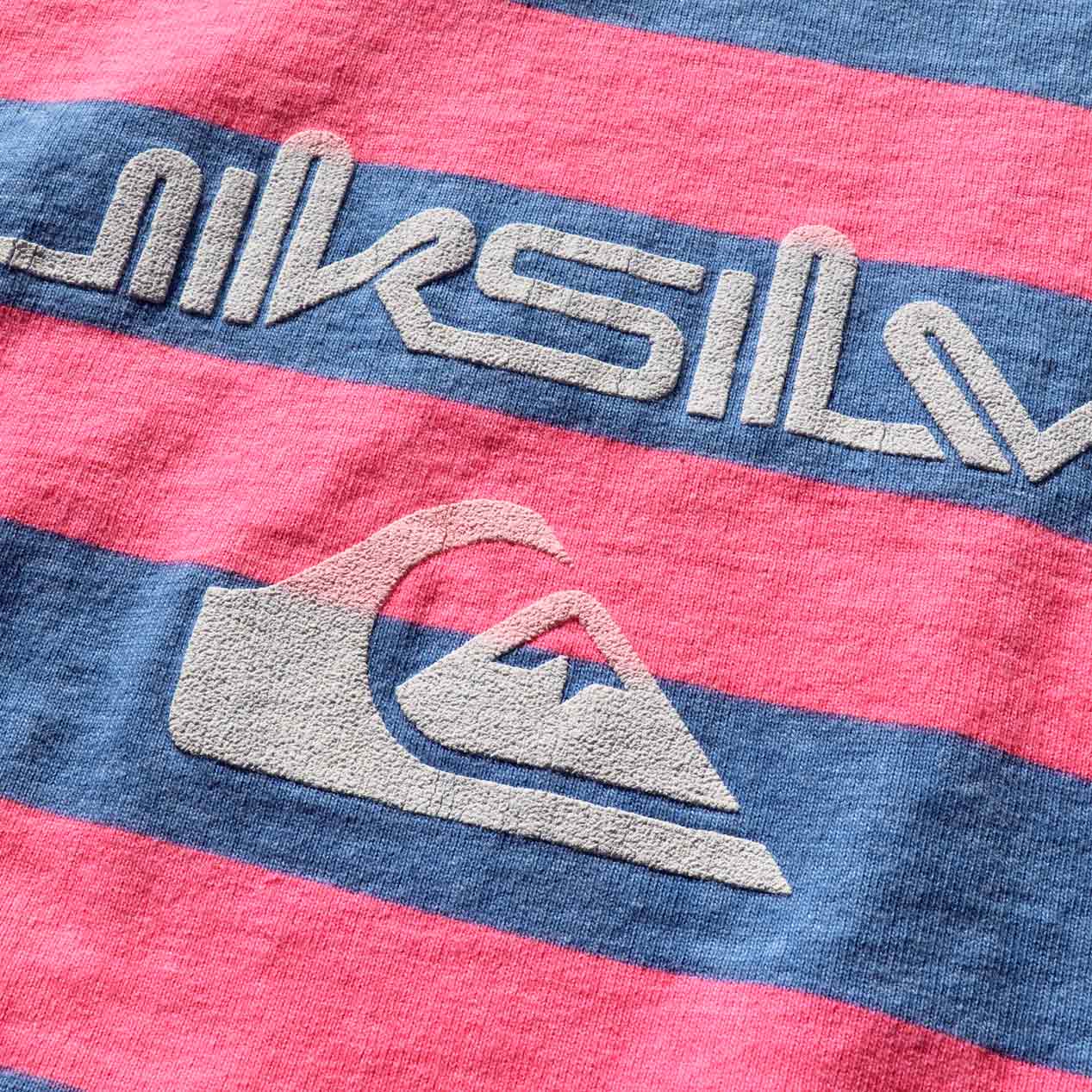 MODEL : QUIKSILVER ピンク×ブルー プリントボーダーTシャツ MANUFACTURE : Made In U.S.A. AGE : 80’s SIZE : M COLOR : ピンク×ブルー MATERIAL : コットン 100% COMMENT : 80年代、クイックシルバーのボーダーTシャツです。