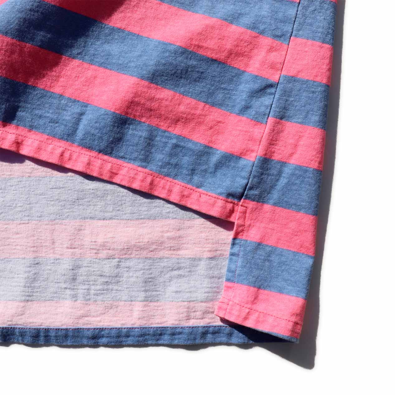 プリントによるピンク×ブルーのボーダー柄デザイン。