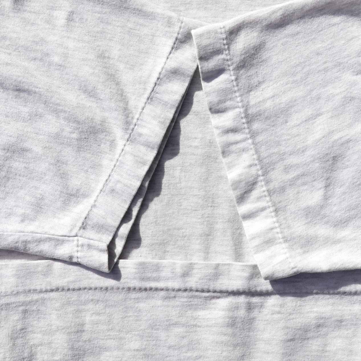 縫製は袖・裾ともにシングルステッチ、横割りボディです。
