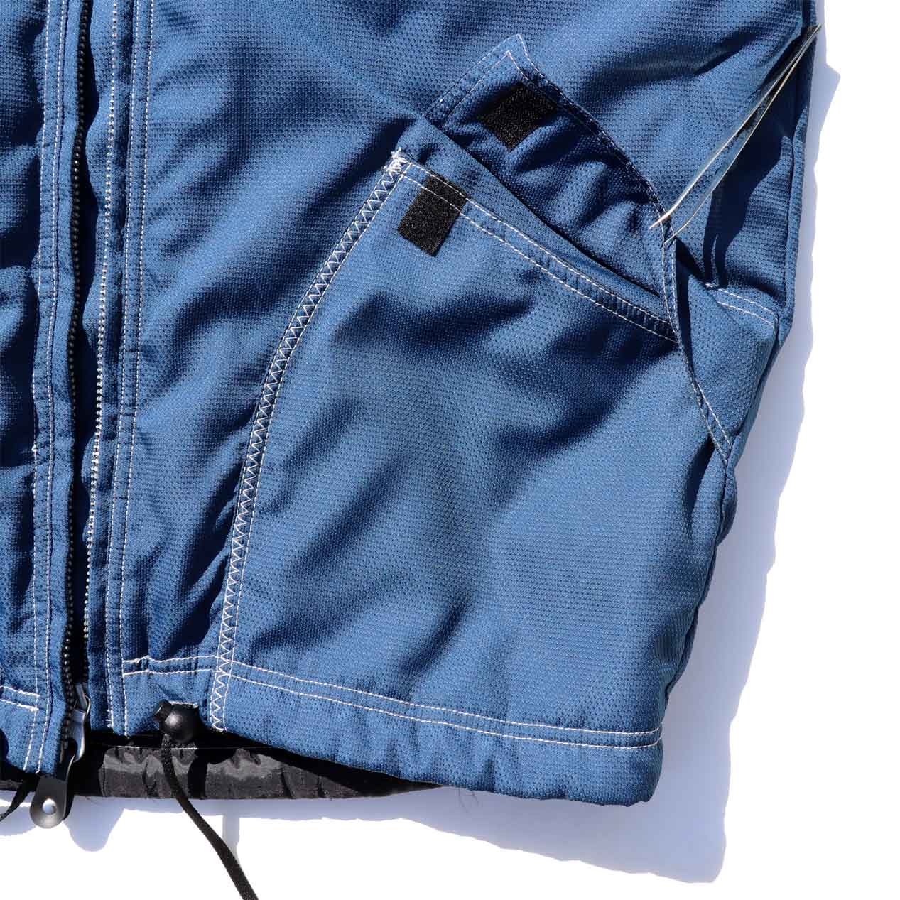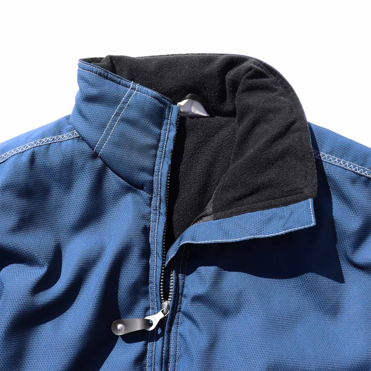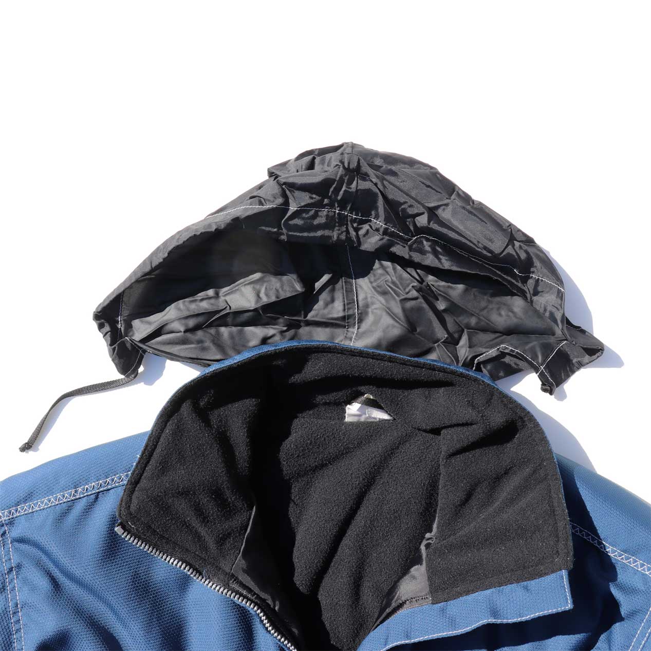 中綿入り、首裏・背裏はフリース切り替え、その他裏地はポリエステル生地。