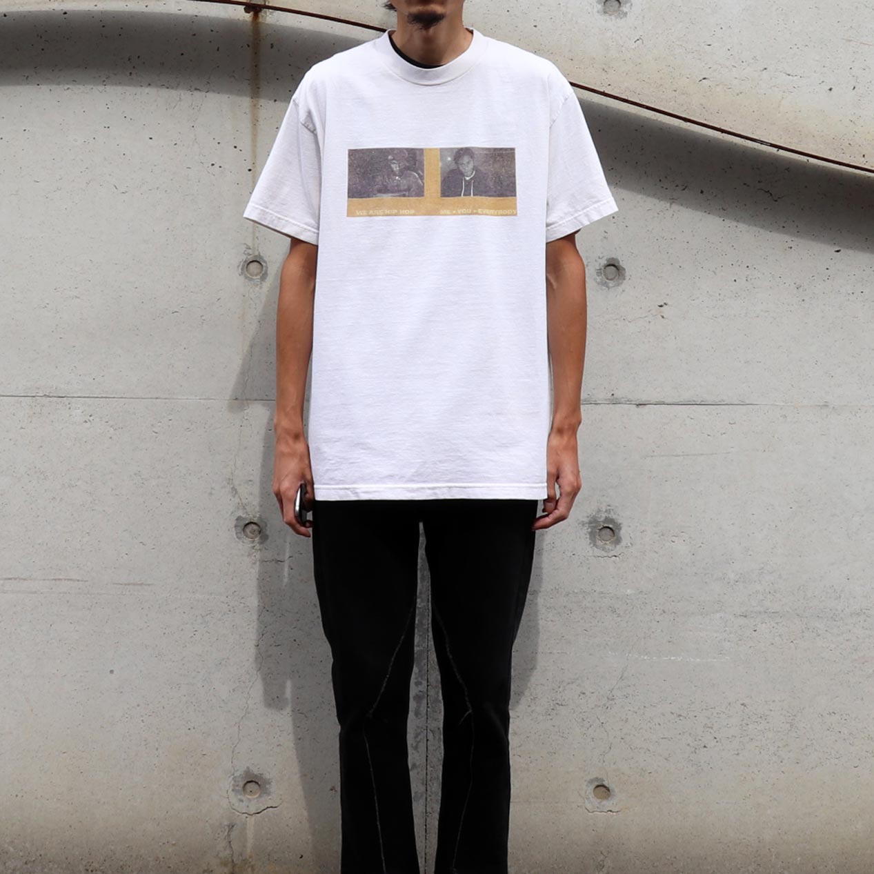 MODEL : MOS DEF ”WE ARE HIP HOP : ME・YOU・EVERYBODY” プリントTシャツ MANUFACTURE : Made In U.S.A. AGE : 00's SIZE : L COLOR : ナチュラル MATERIAL : コットン 100% COMMENT : 00年代、モス・デフのプリントTシャツです。