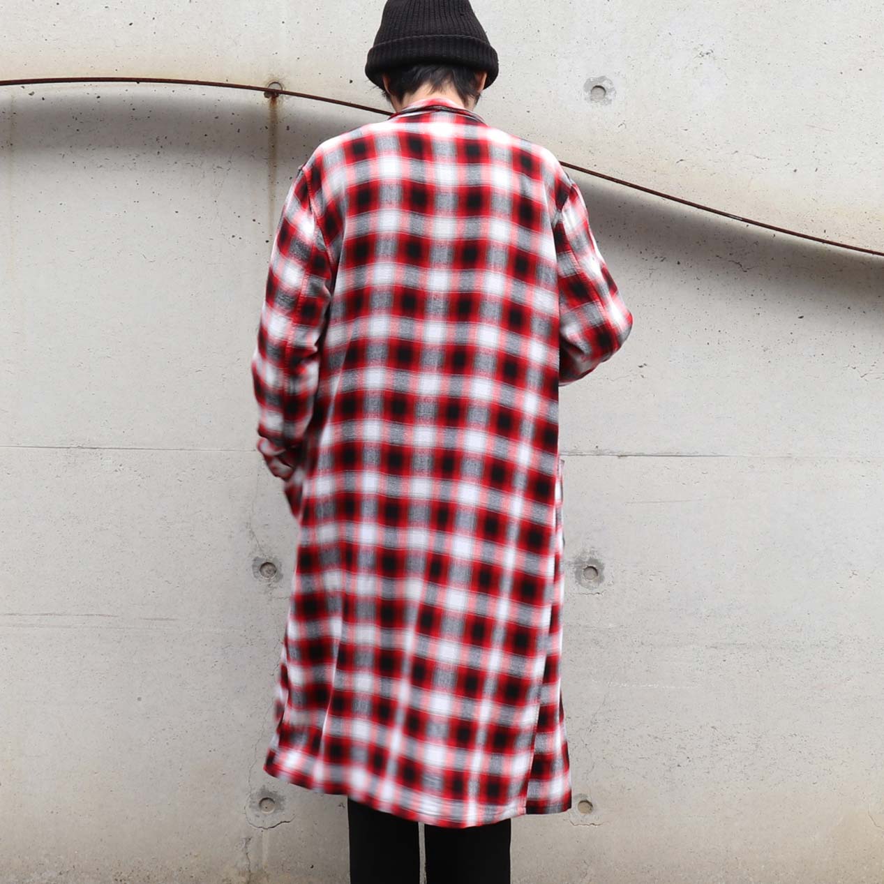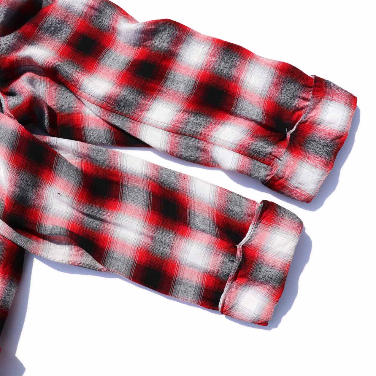レッド系のオンブレチェックパターン。
