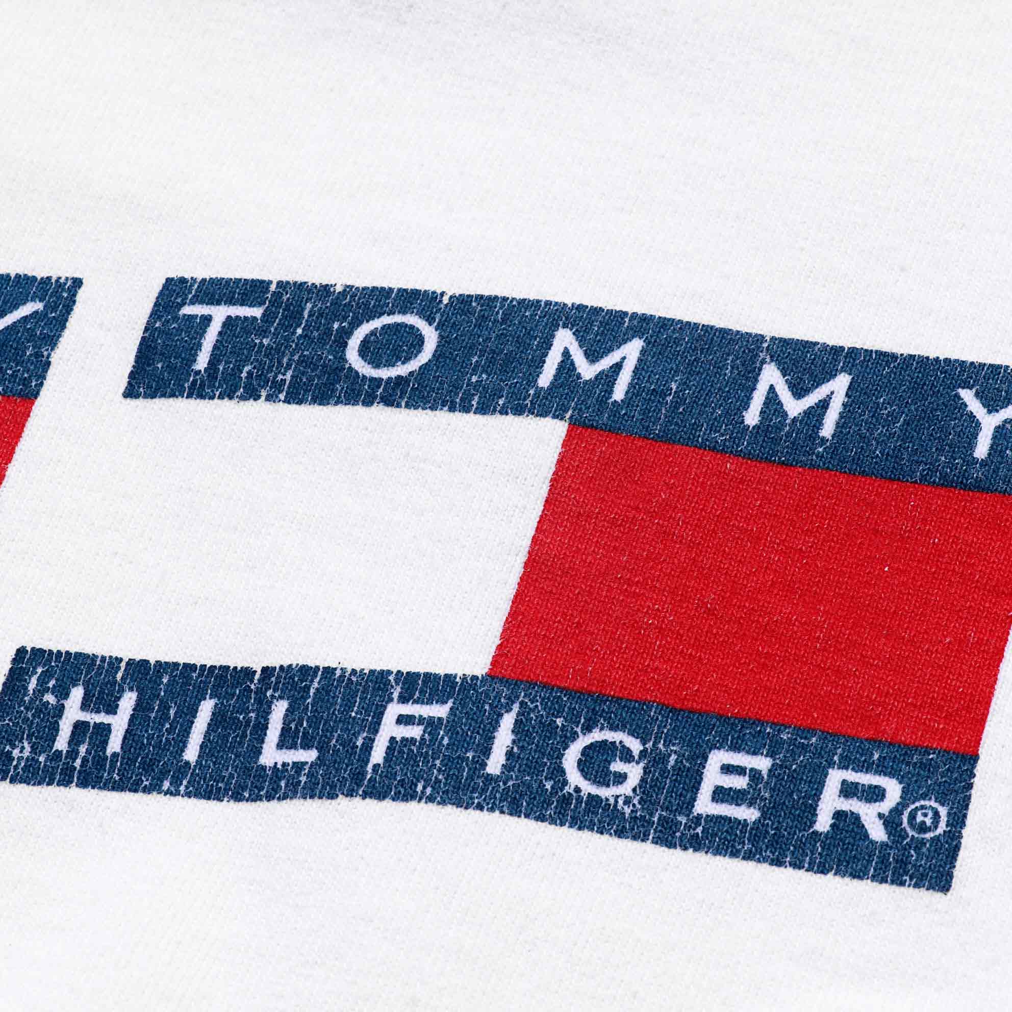 MODEL : ブート TOMMY HILFIGER USA製 フラッグロゴ プリントTシャツ MANUFACTURE : Made In U.S.A. AGE : 90's SIZE : XL COLOR : ホワイト MATERIAL : コットン 100% COMMENT : 90年代、ブートTOMMY HILFIGERのプリントTシャツです。