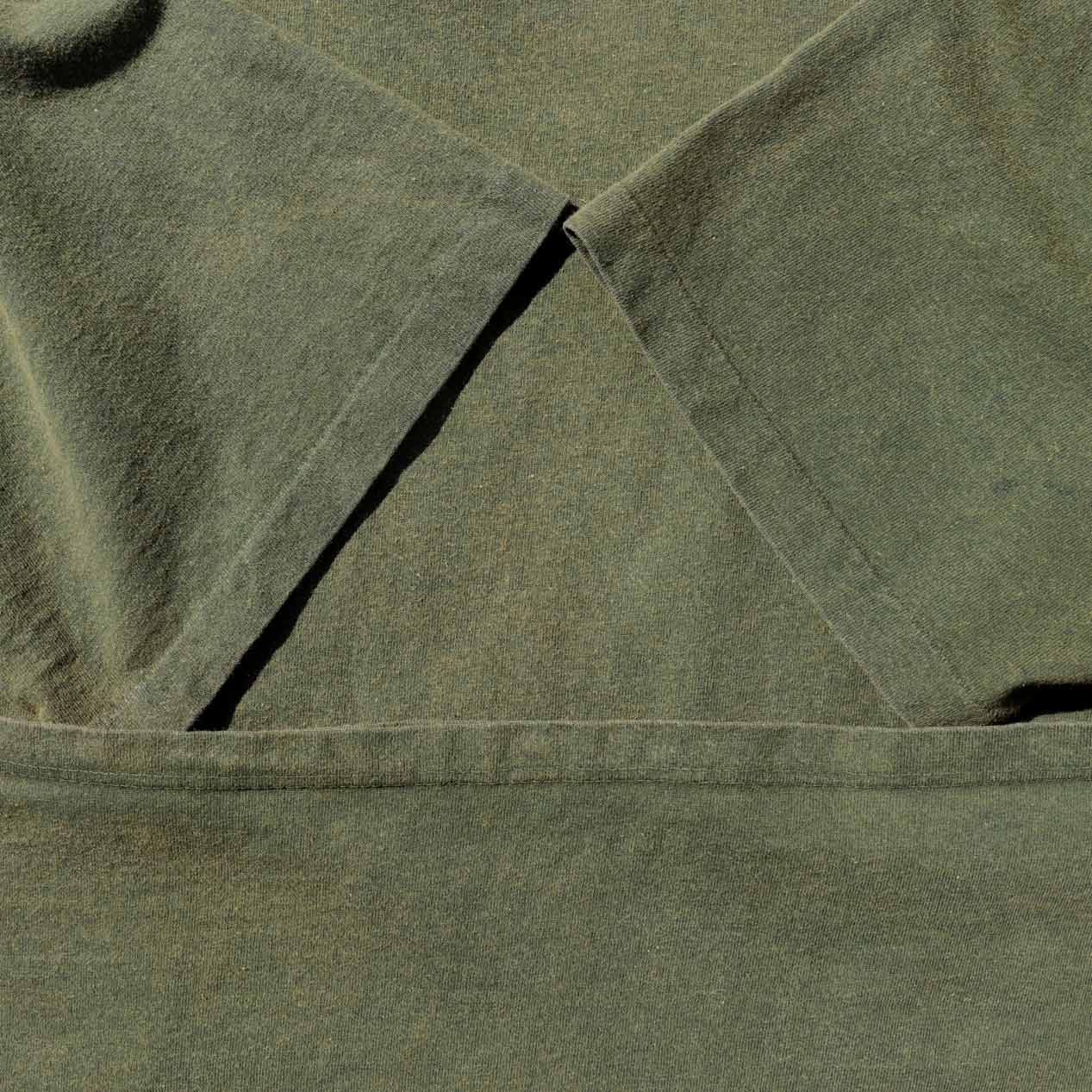 カラーはモスグリーン、若干黄色味があり製品染めされたような杢感があります。