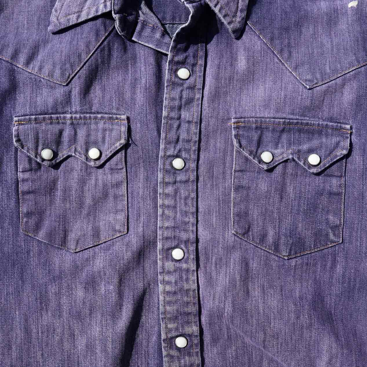素晴らしいグラデーションと独特なカラートーンが魅力のデニムウエスタンシャツ。