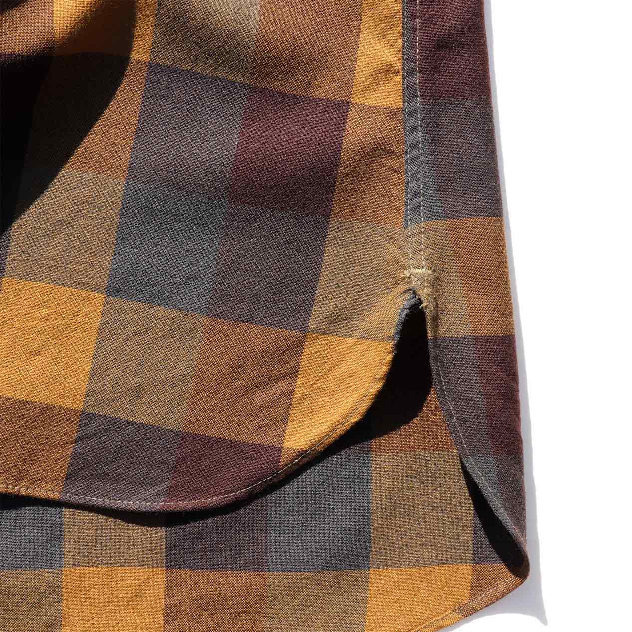 日本製、ブラウン系のマルチブロックチェックパターン。