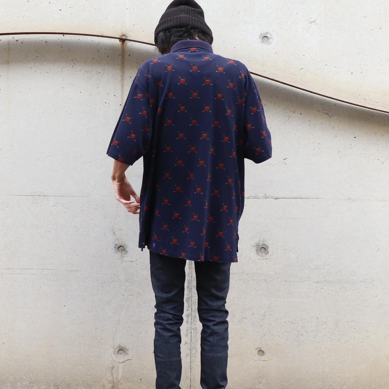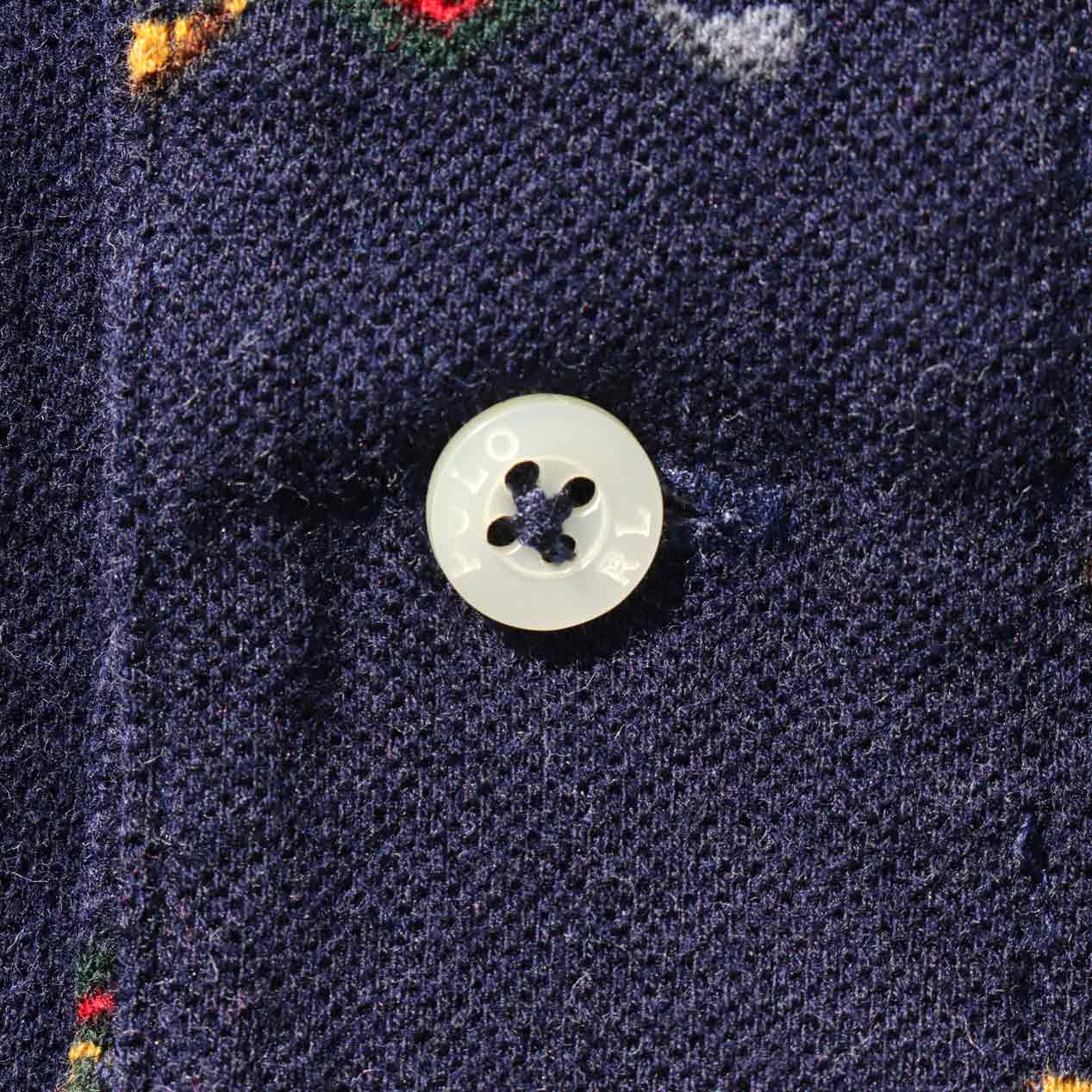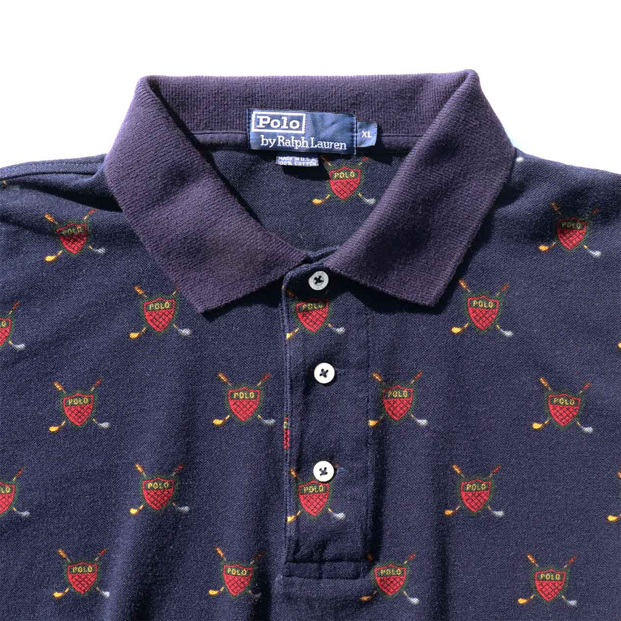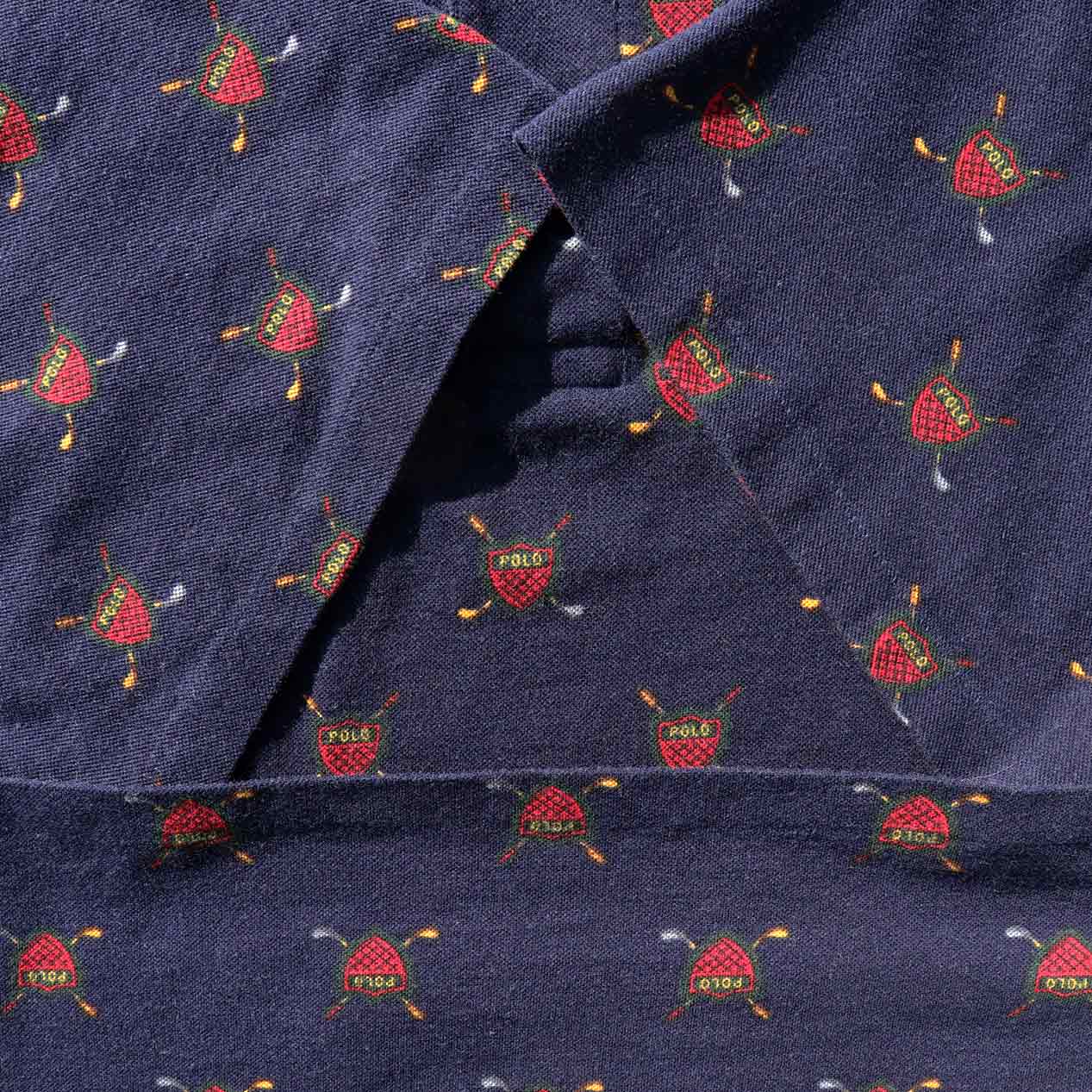 MODEL : POLO RALPH LAUREN USA製 ダークグリーン 総柄 ポロシャツ MANUFACTURE : Made In U.S.A. AGE : 90's SIZE : XL COLOR : ネイビー MATERIAL : コットン 100% COMMENT : 90年代、ポロラルフローレンのポロシャツです。