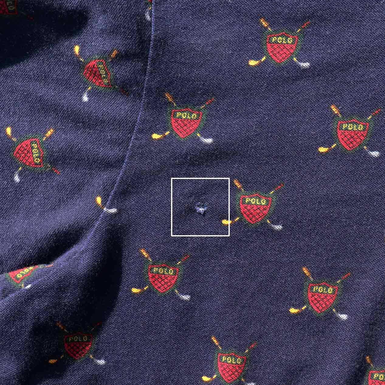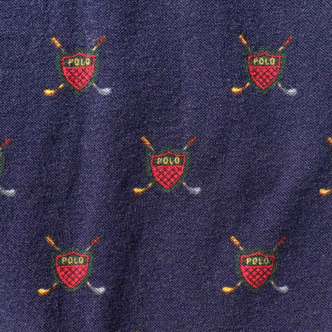 USA製、ゴルフエンブレムの総柄プリント。