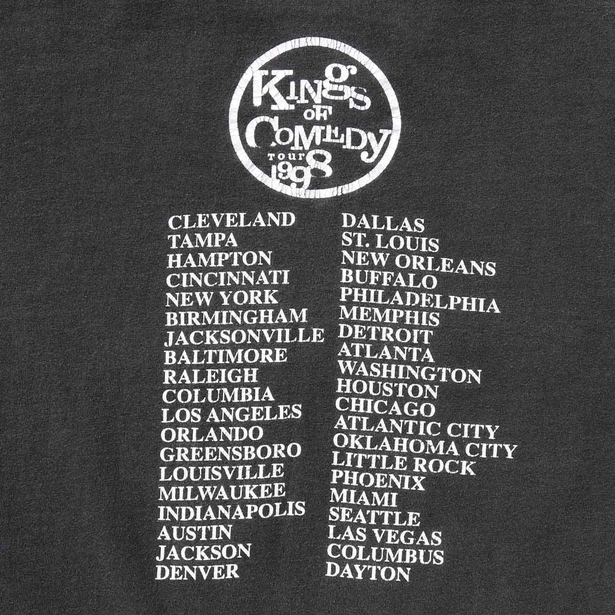 MODEL : KINGS OF COMEDY TOUR 1998 プリントTシャツ MANUFACTURE : Made In Mexico AGE : 90's SIZE : XXL COLOR : ブラック MATERIAL : コットン 100% COMMENT : 90年代、キングオブコメディのプリントTシャツです。