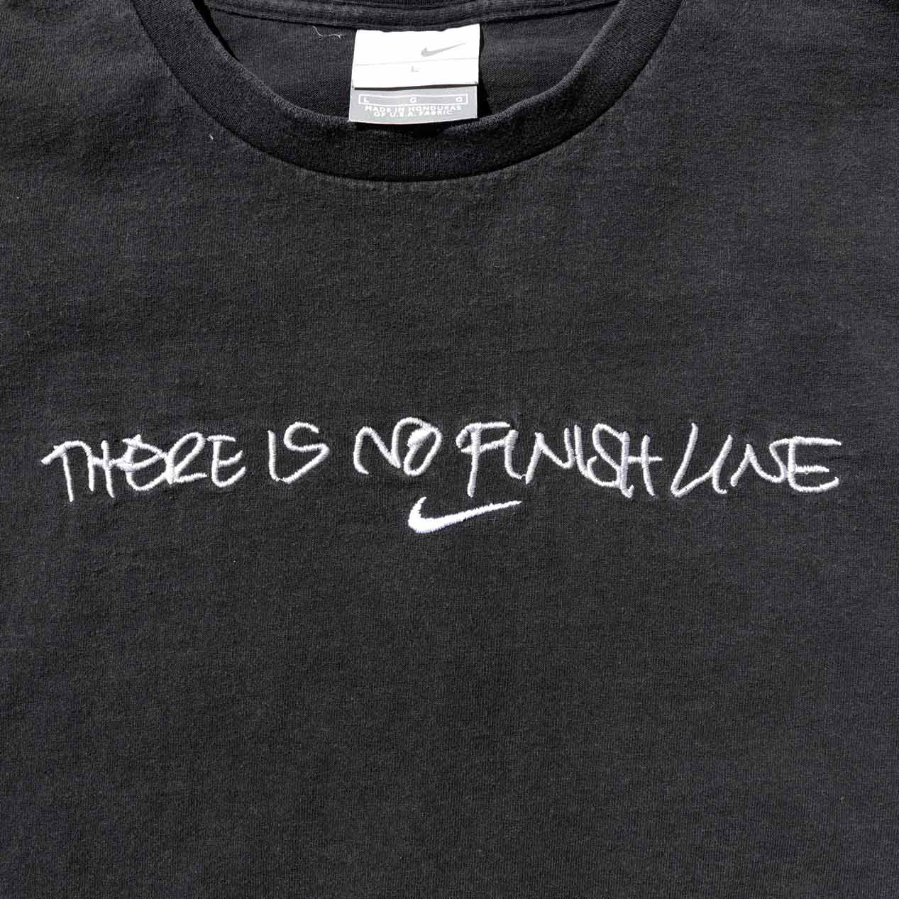 MODEL : NIKE ”THERE IS NO FINISH LINE” 刺繍ロゴ Tシャツ MANUFACTURE : Made In Honduras AGE : 00's SIZE : L COLOR : ブラック MATERIAL : コットン 100% COMMENT : 00年代、ナイキのTシャツです。