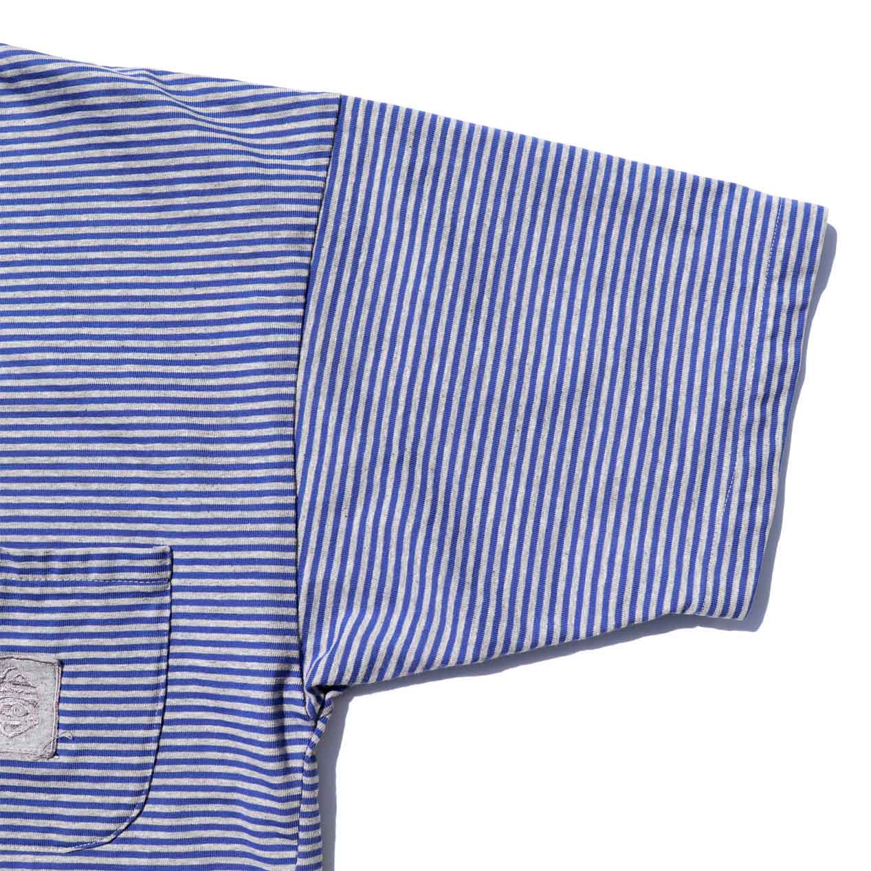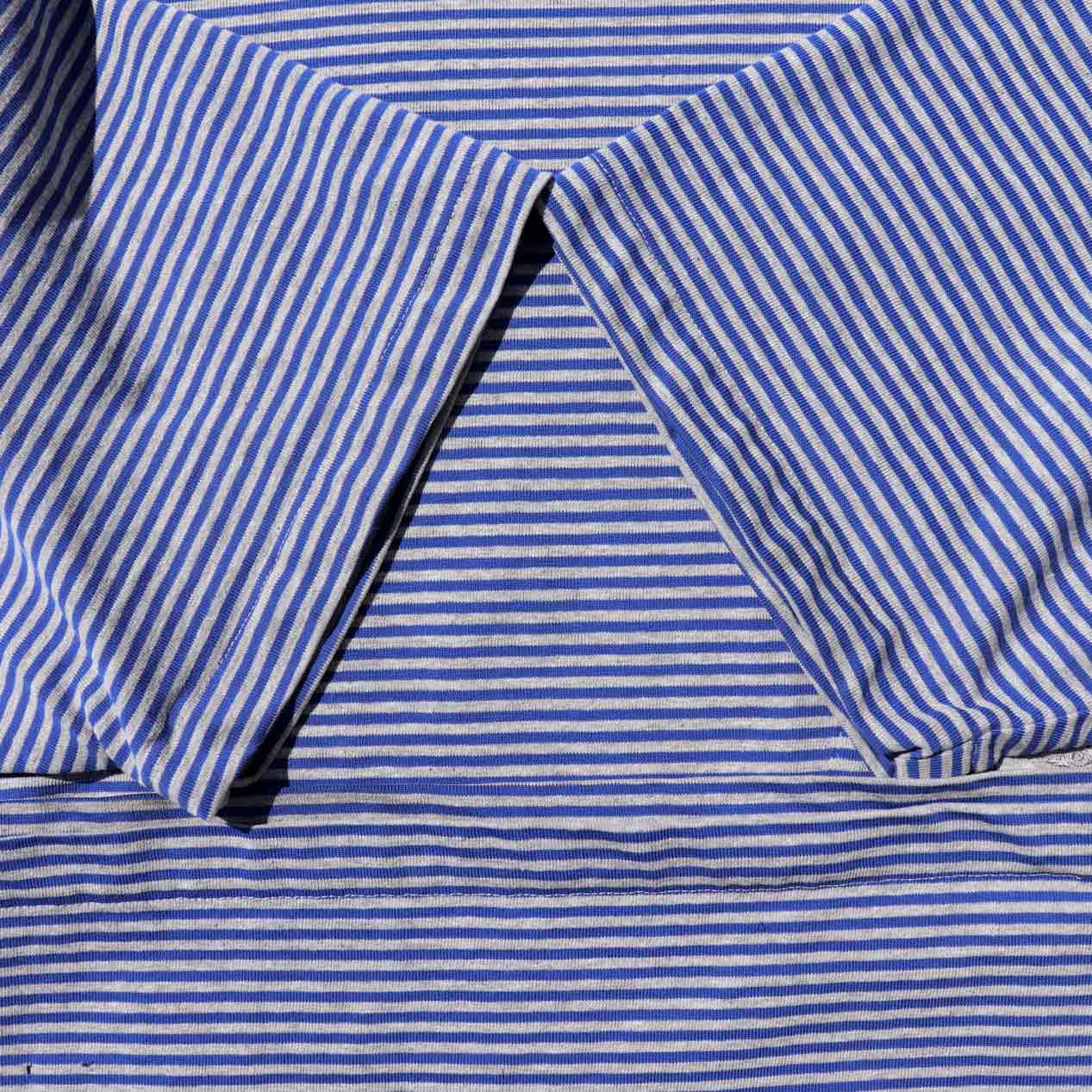 杢グレー×ブルーの先染めボーダー柄。