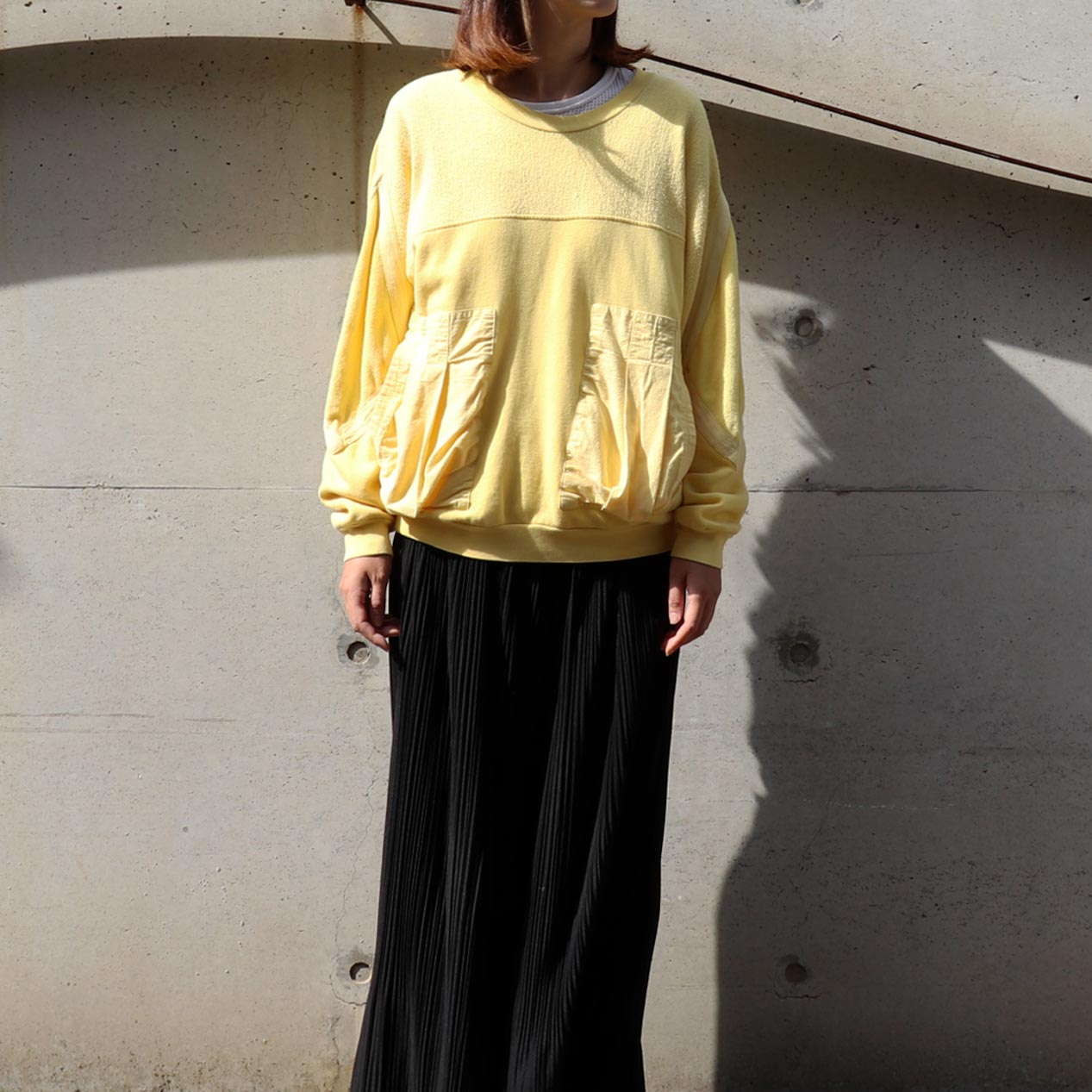 MODEL : UNKNOWN パッチポケット ドルマンスウェット MANUFACTURE : Made In Korea AGE : 80's~ SIZE : M/L COLOR : イエロー MATERIAL : コットン 100% COMMENT : 80年代~、ブランド不明のスウェットシャツです。