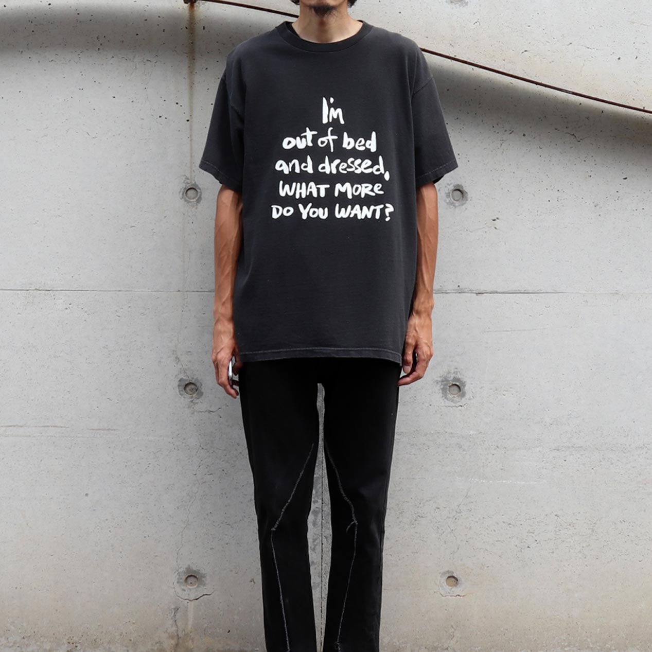COMMENT : 00年代、I’M OUT OF BED AND DRESSED プリントTシャツです。