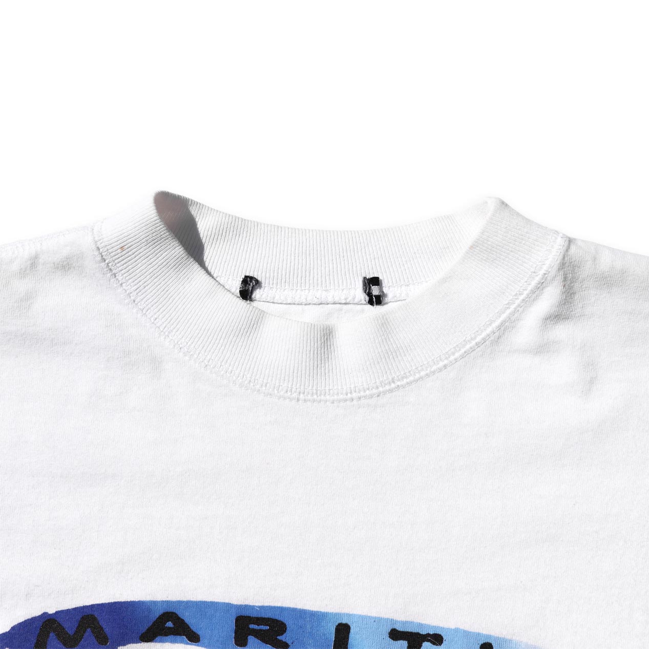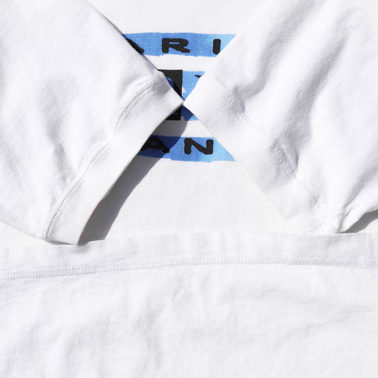 パッと見はシンプルなロゴプリントTEE、近くで見ると独特なカッティングが感じ取れるマリテらしいデザイン。