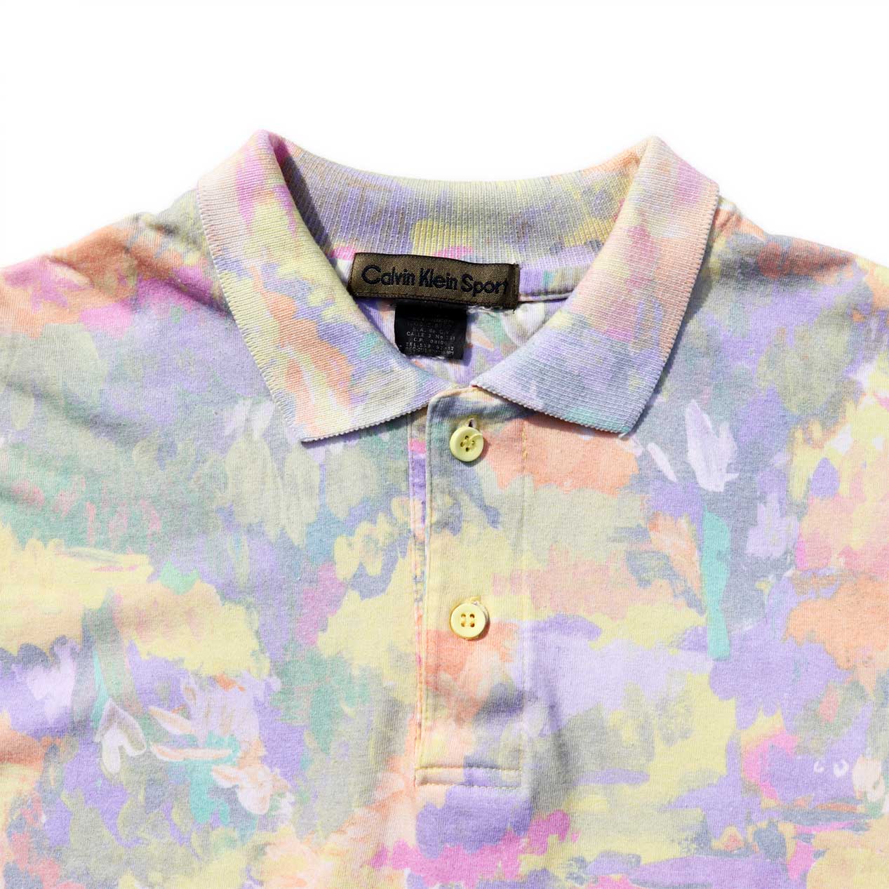 MODEL : CALVIN KLEIN SPORT 水彩総柄 ポロシャツ MANUFACTURE : Made In Mexico AGE : 80's SIZE : --- (XL相当) COLOR : マルチ MATERIAL : コットン 100% COMMENT : 80年代、カルバンクラインスポーツのポロシャツです。