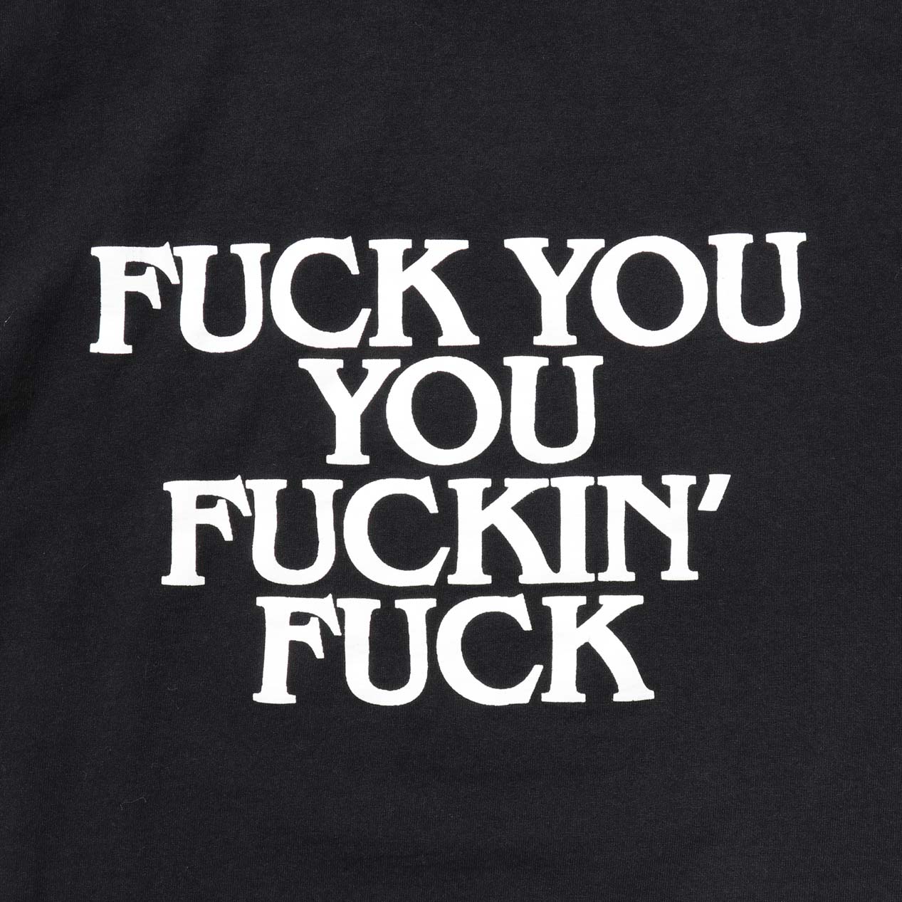 MODEL : FUCK YOU YOU FUCKIN’ FUCK USA製 Tシャツ MANUFACTURE : Made In U.S.A. AGE : 90's SIZE : M COLOR : ブラック MATERIAL : コットン 100% COMMENT : 90年代、FUCK YOU YOU FUCKIN’ FUCKプリントTEE。
