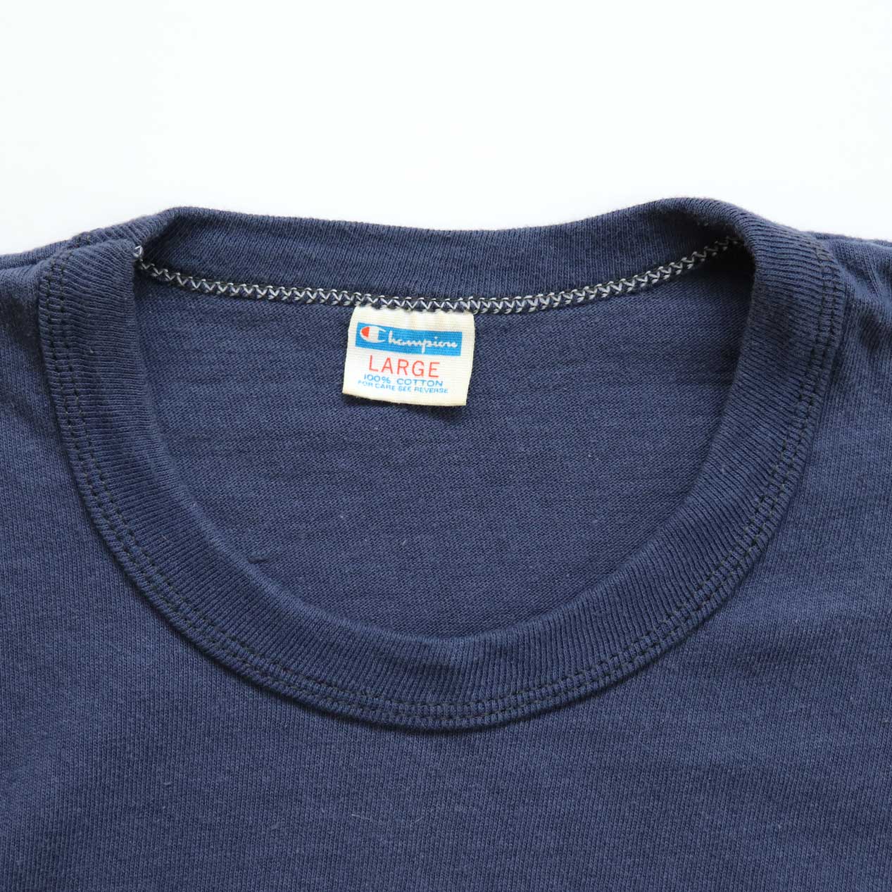 MODEL : CHAMPION Blue Bar Tag Print T-Shirt MANUFACTURE : Made In U.S.A. AGE : 70's SIZE : Large COLOR : ネイビー MATERIAL : コットン 100% COMMENT : 70年代、ブルーバータグのカレッジTです。