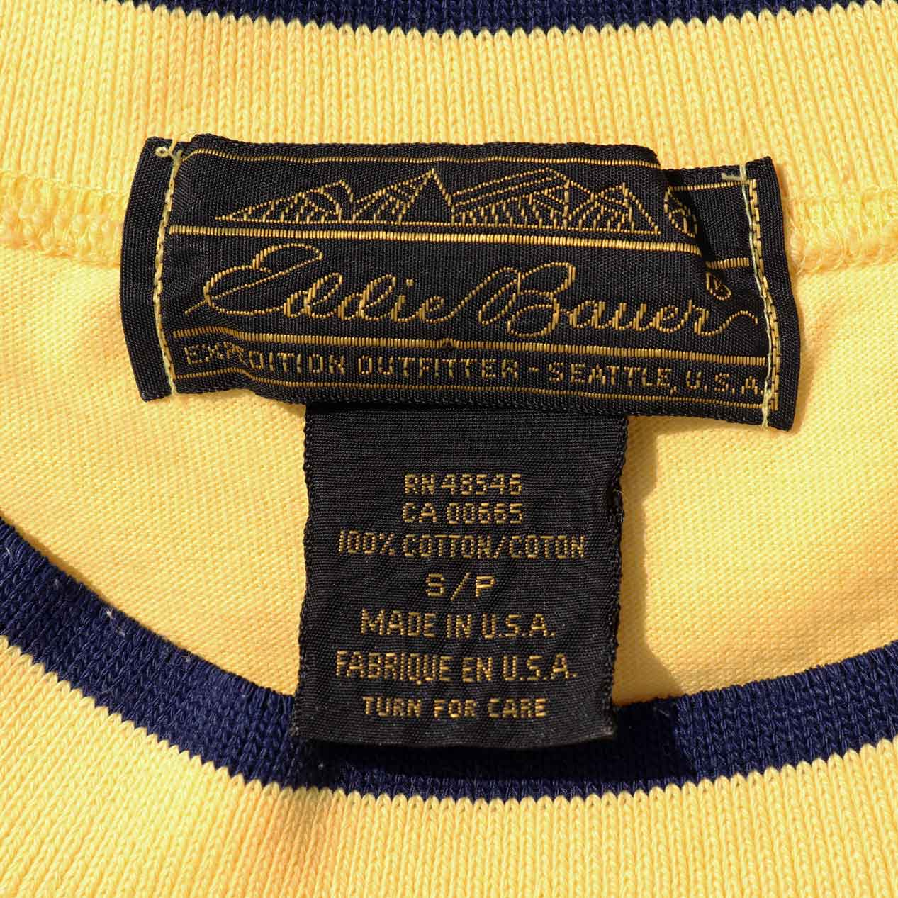 MODEL : EDDIE BAUER USA製 ポケットTシャツ MANUFACTURE : Made In U.S.A. AGE : 80's SIZE : S COLOR : イエロー MATERIAL : コットン 100% COMMENT : 80年代、エディーバウアーのTシャツです。