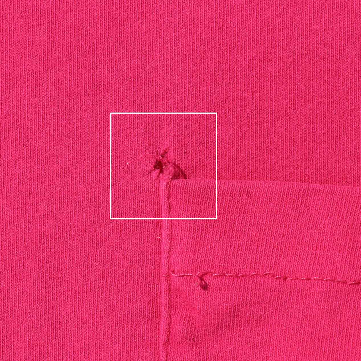 ポケット裏耳付き(解けあり)、縫製は袖・裾ともにシングルステッチです。