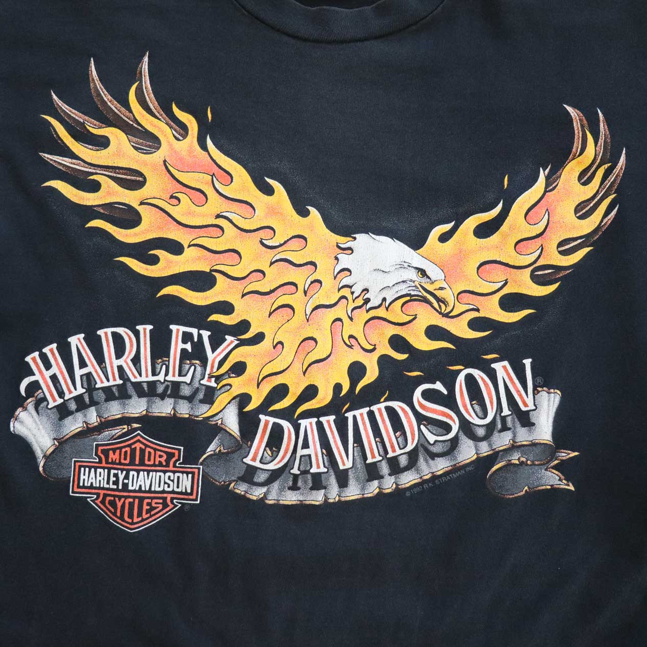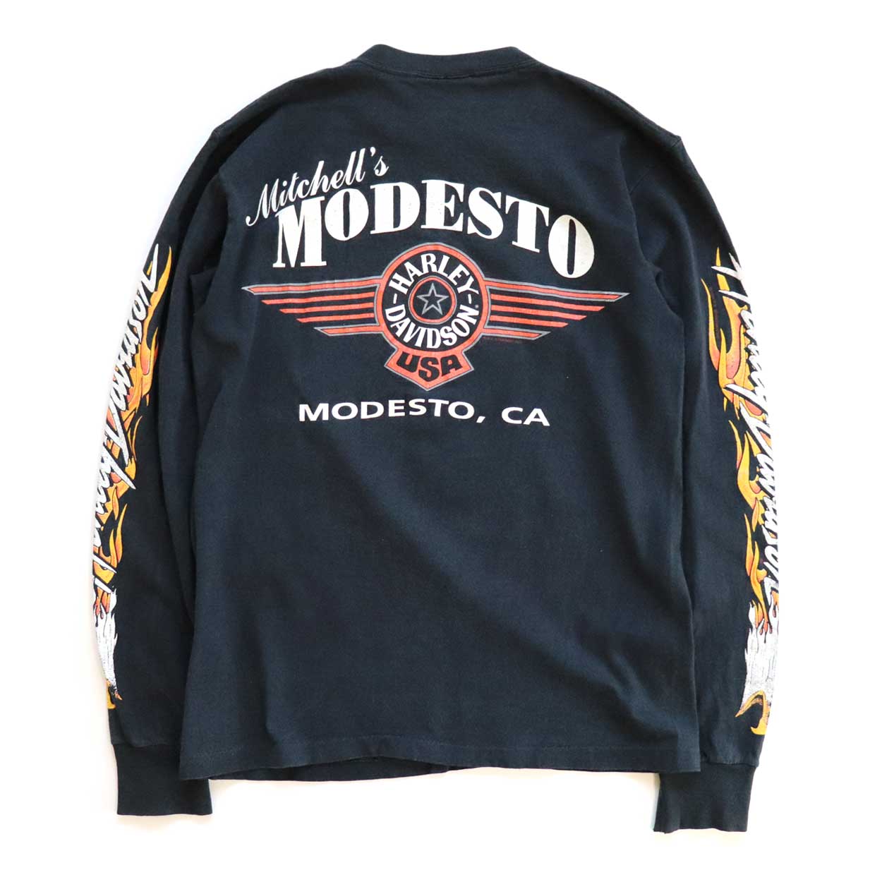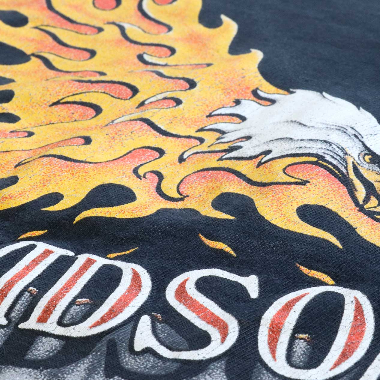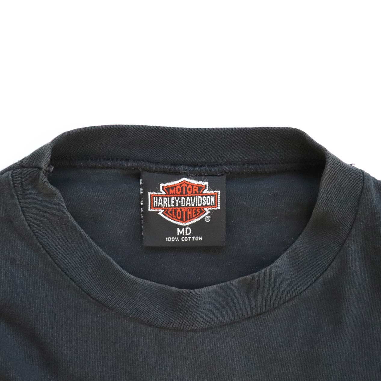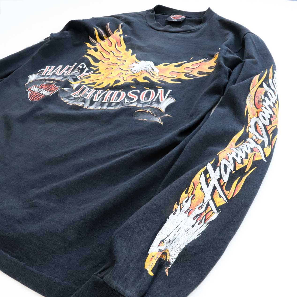 MODEL : HARLEY DAVIDSON Long Sleeve Print T-Shirt MANUFACTURE : Made In U.S.A. AGE : 90's SIZE : M COLOR : ブラック MATERIAL : コットン 100% COMMENT : 92年ライセンスのロングスリーブハーレーTです。