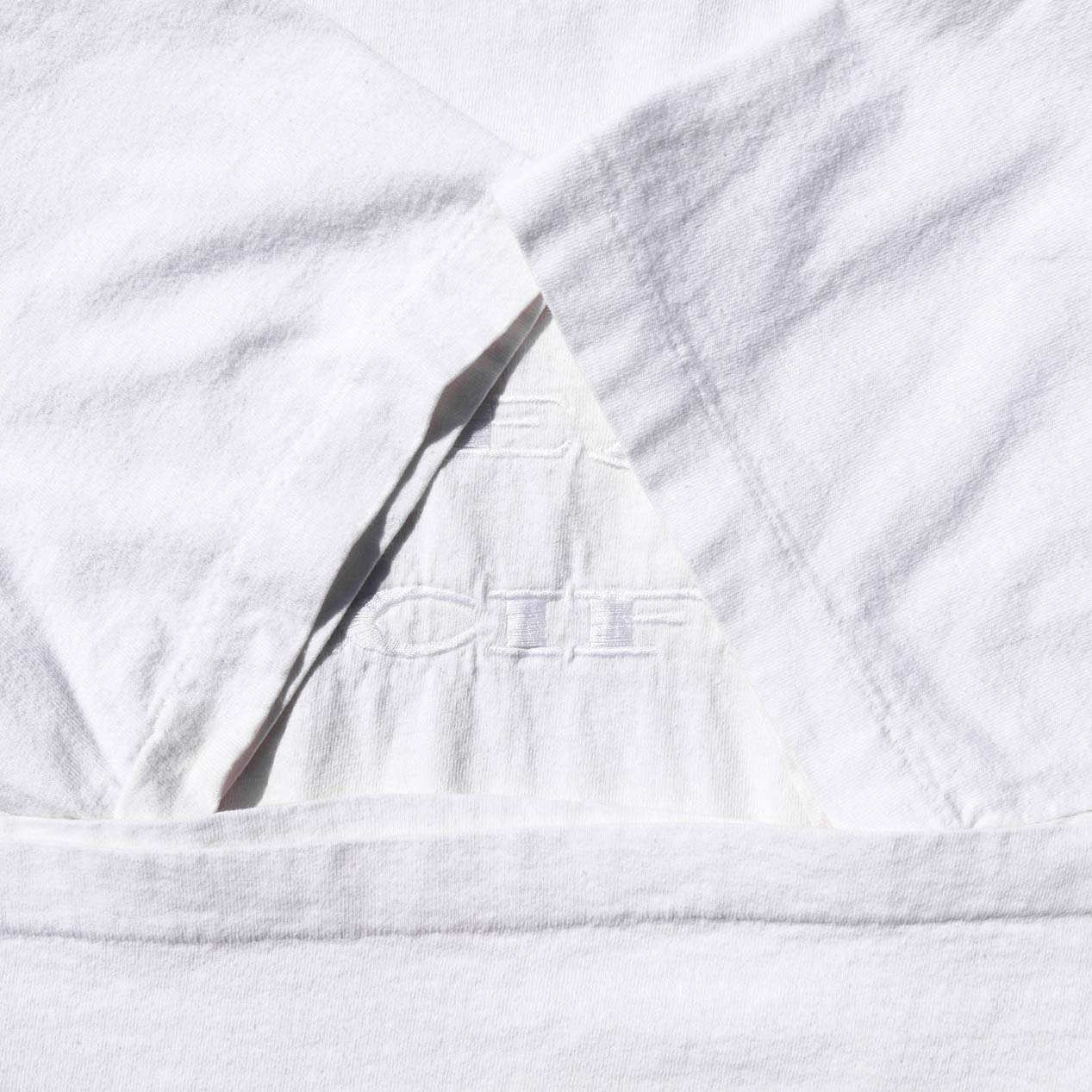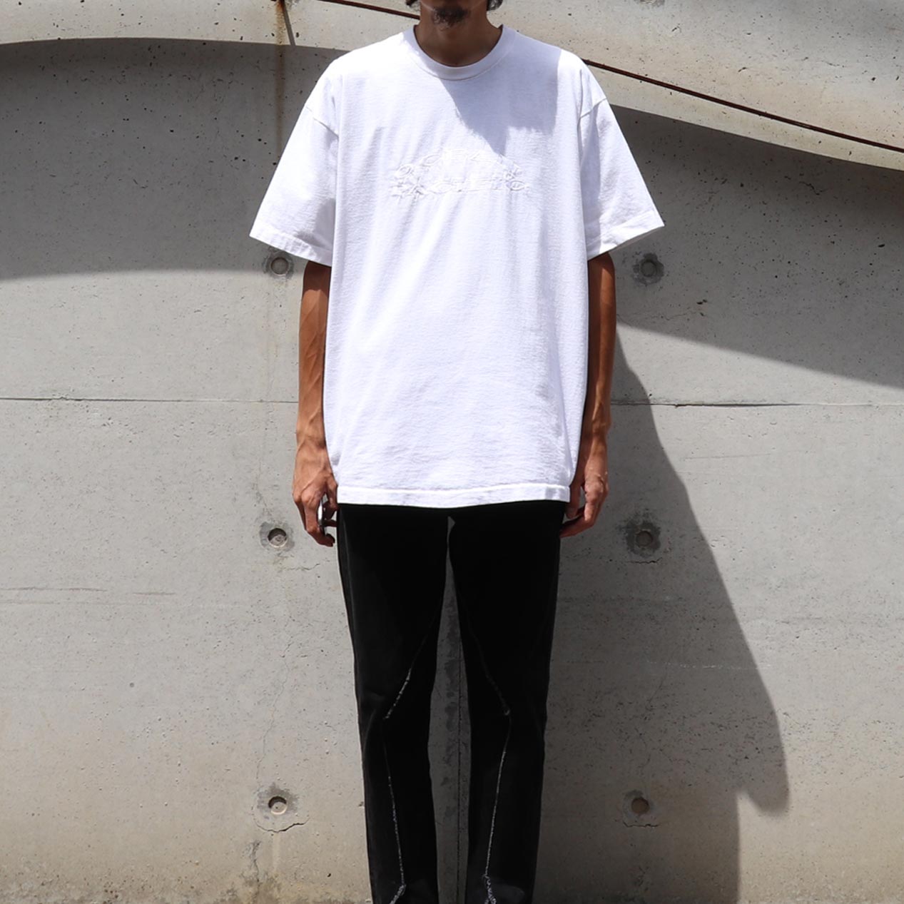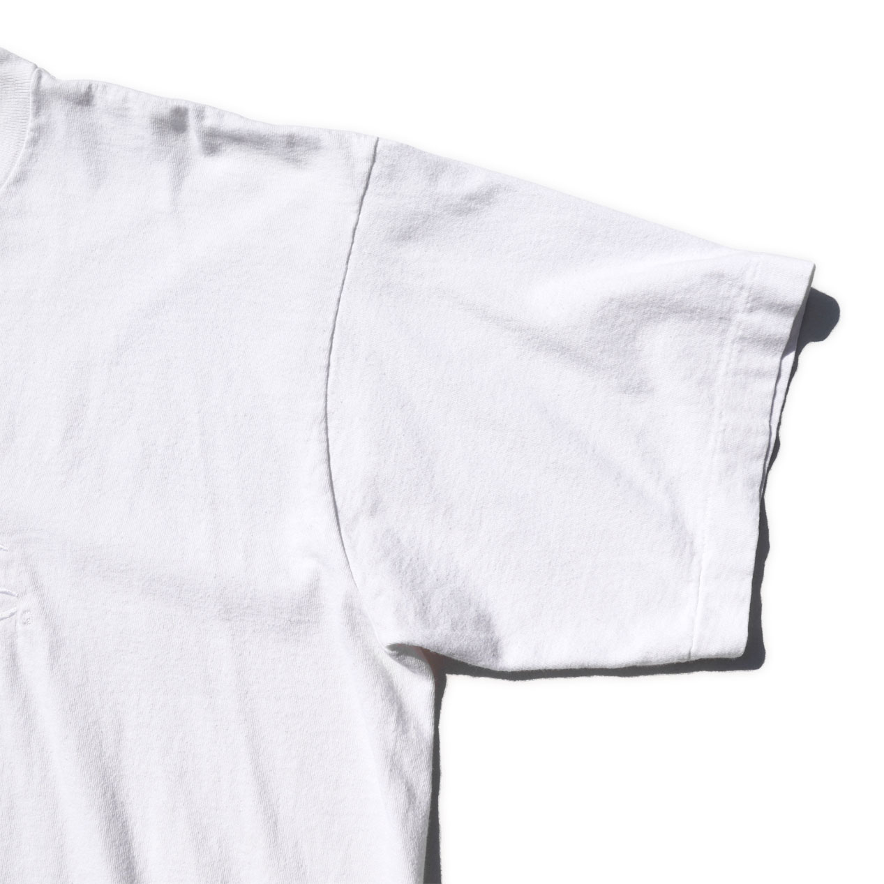 一見無地TEE、実はボディ同色の刺繍入りという粋なデザイン。
