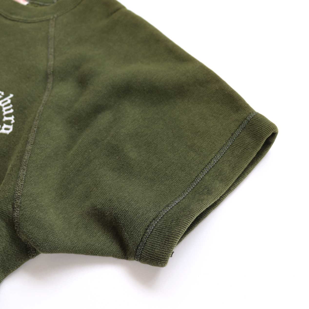 MODEL : CHAMPION Runners Tag Print Sweat MANUFACTURE : Made In U.S.A. AGE : 60's SIZE : Large 42-44 COLOR : モスグリーン MATERIAL : コットン 100% COMMENT : 60年代、ランタグの半袖スウェットです。
