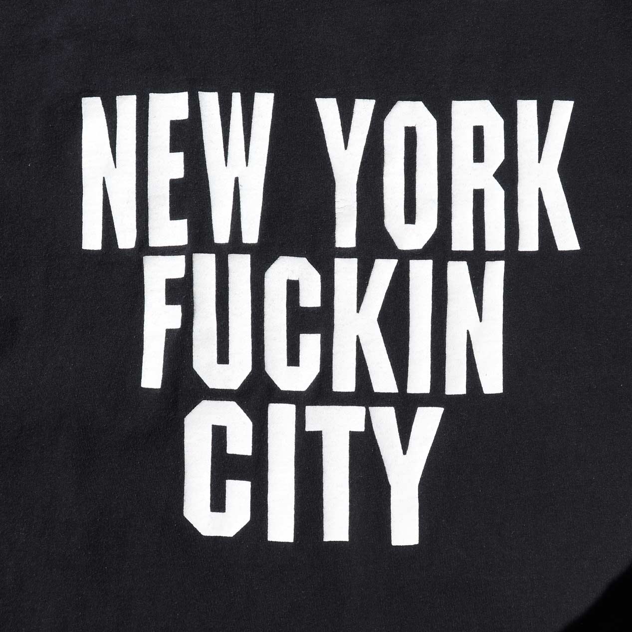 MODEL : FRUIT OF THE LOOM ”NEW YORK FUCKIN CITY” Tシャツ MANUFACTURE : Made In El Salvador AGE : 00's SIZE : XL COLOR : ブラック MATERIAL : コットン 100% COMMENT : 00年代、NEW YORK FUCKIN CITYプリントTシャツです。