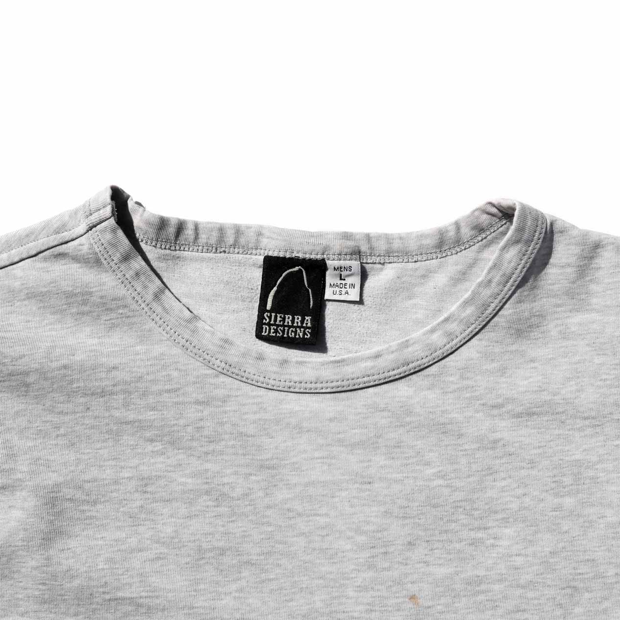 MODEL : SIERRA DESIGNS USA製 無地Tシャツ MANUFACTURE : Made In U.S.A. AGE : 90's~ SIZE : L COLOR : 杢グレー MATERIAL : コットン 60% ポリエステル 40% COMMENT : 90年代~、シエラデザインズのTシャツです。