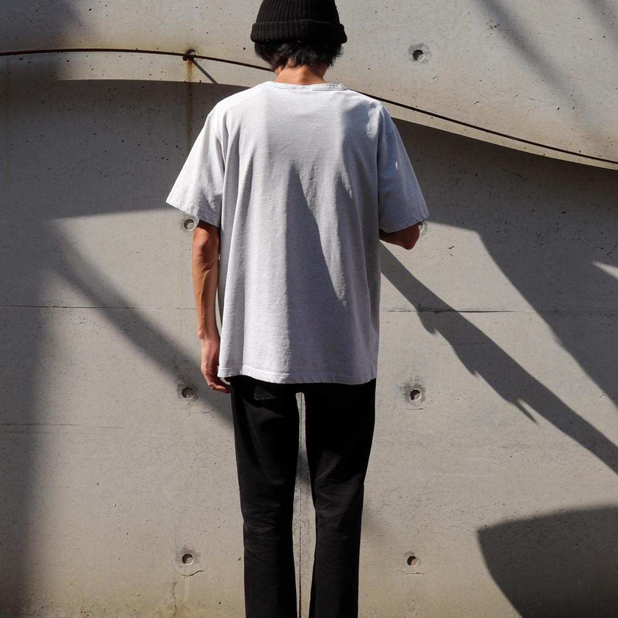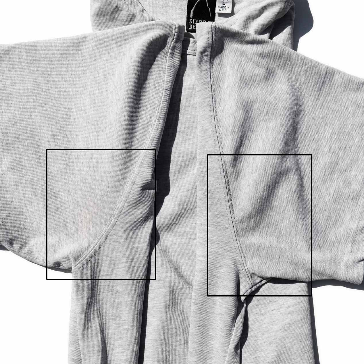 バインダーネック、縫製は袖・裾ともにダブルステッチです。