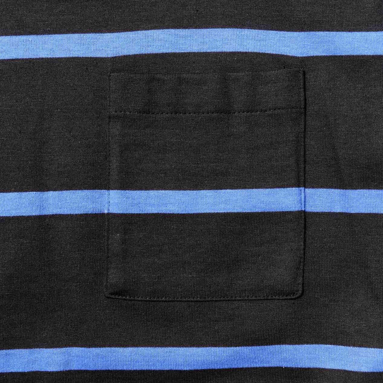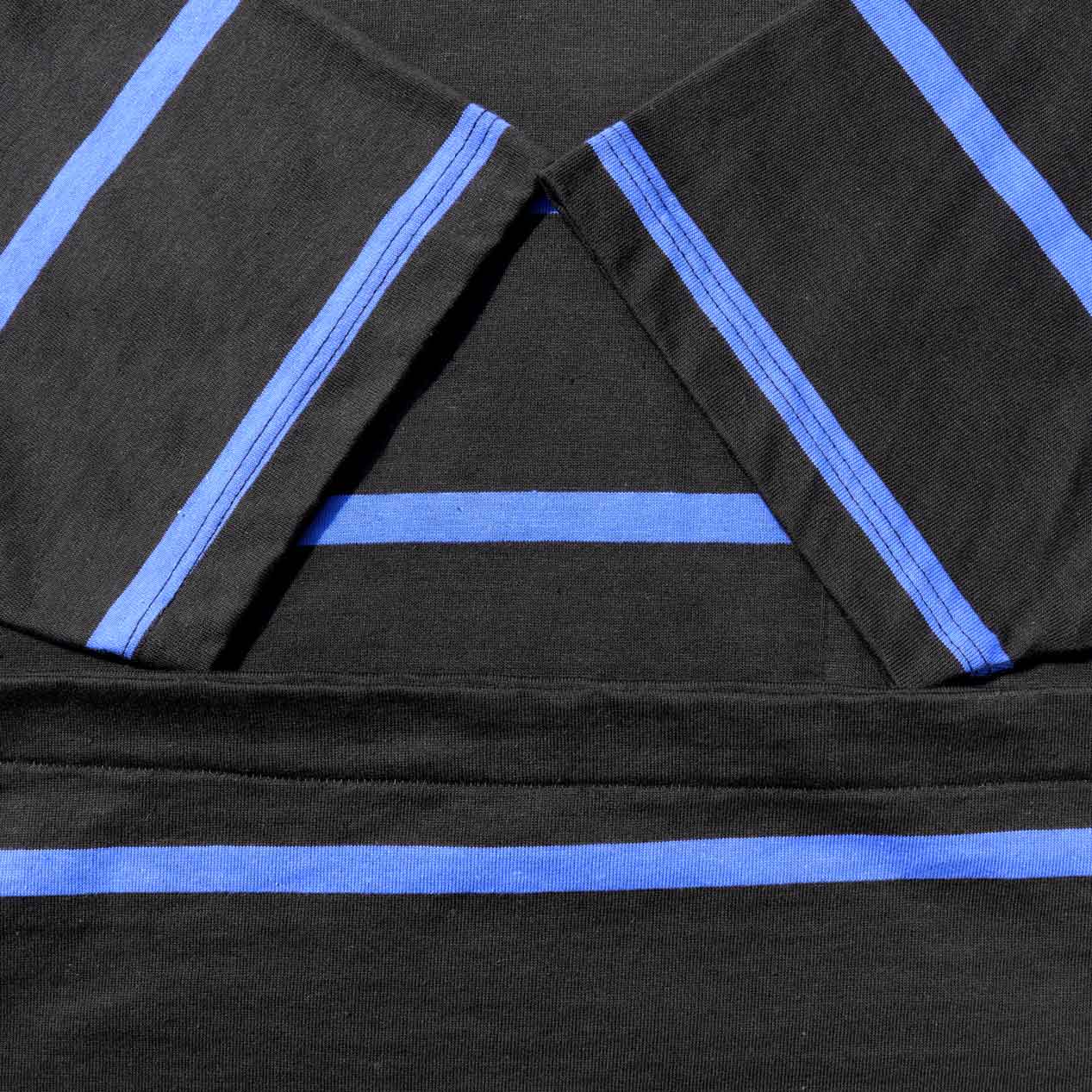 ブラックベースにブルーのボーダーデザイン。