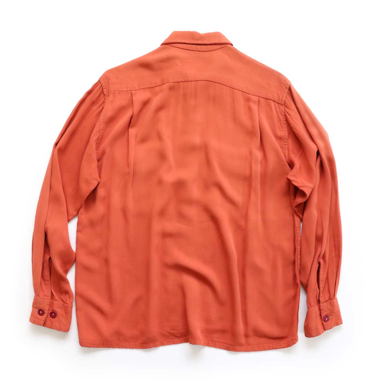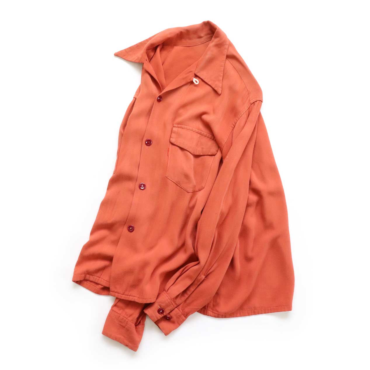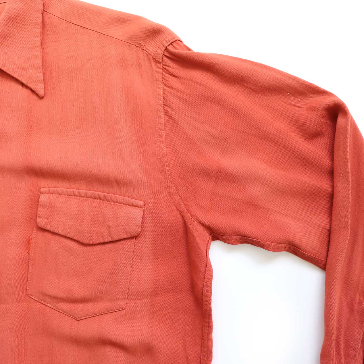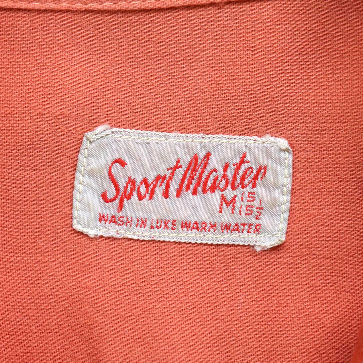 MODEL : SPORT MASTER Rayon Gabardine Shirt MANUFACTURE : --- AGE : 40's SIZE : 15-1/2 M COLOR : アプリコットオレンジ MATERIAL : --- (おそらくレーヨン100%) COMMENT : 40年代、SPORT MASTERのレーヨンギャバジンシャツです。