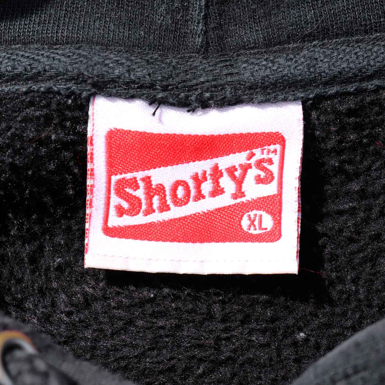 MODEL : SHORTY’S プルオーバーパーカー MANUFACTURE : Made In Russia AGE : 90's SIZE : XL COLOR : ブラック MATERIAL : コットン 80% ポリエステル 20% COMMENT : 90年代、ショーティーズのプルオーバーパーカーです。