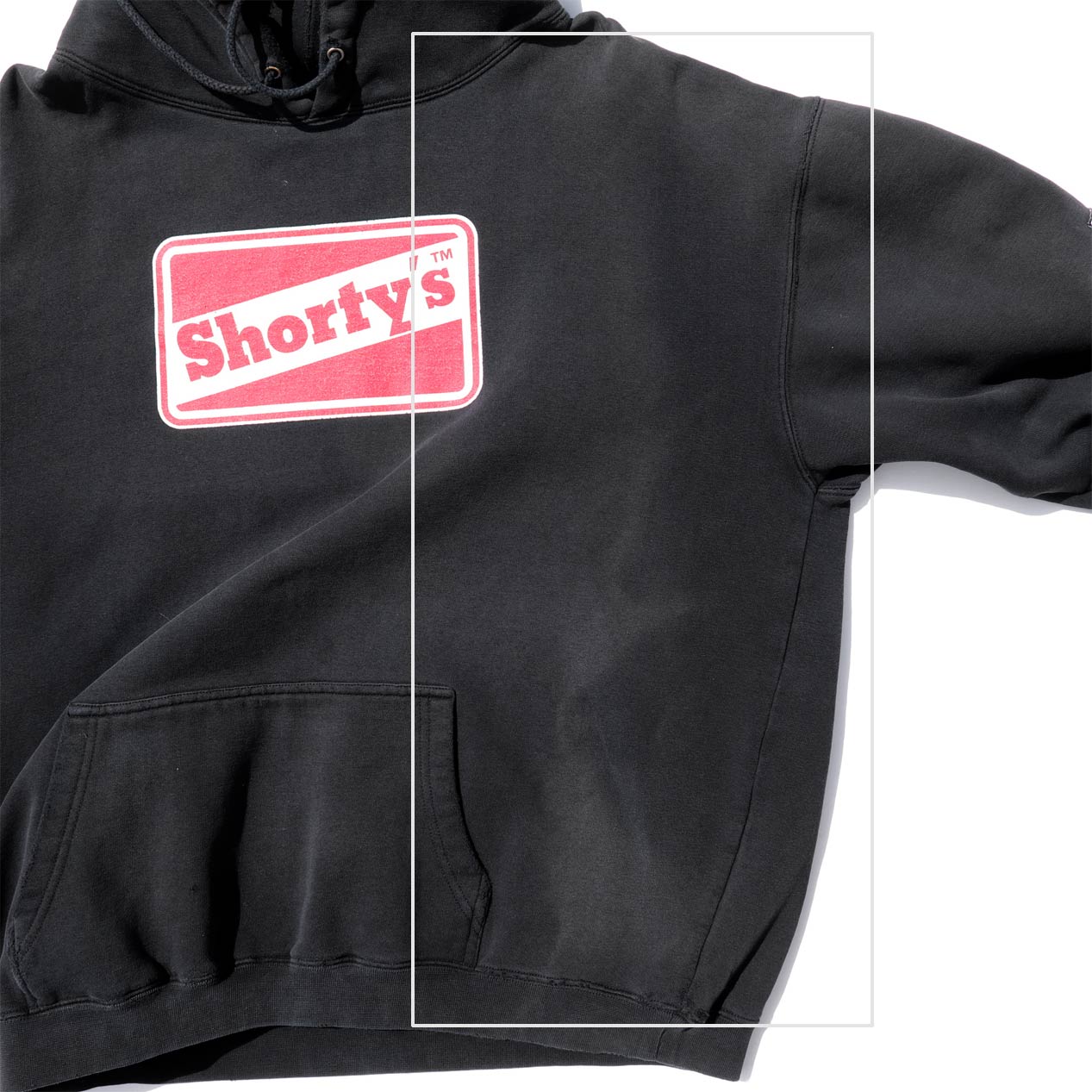 キャッチーなロゴが目を引くSHORTY'Sフーディー。