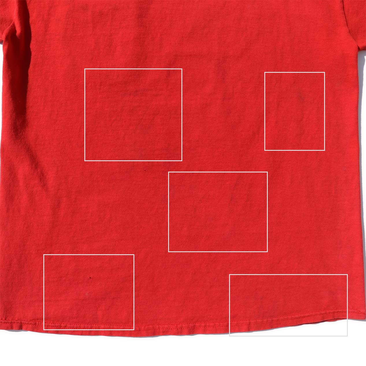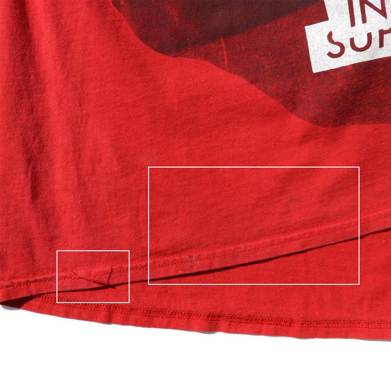 ・フロント : 裾に汚れ、一部ステッチ切れ、肩に軽微な色褪せ