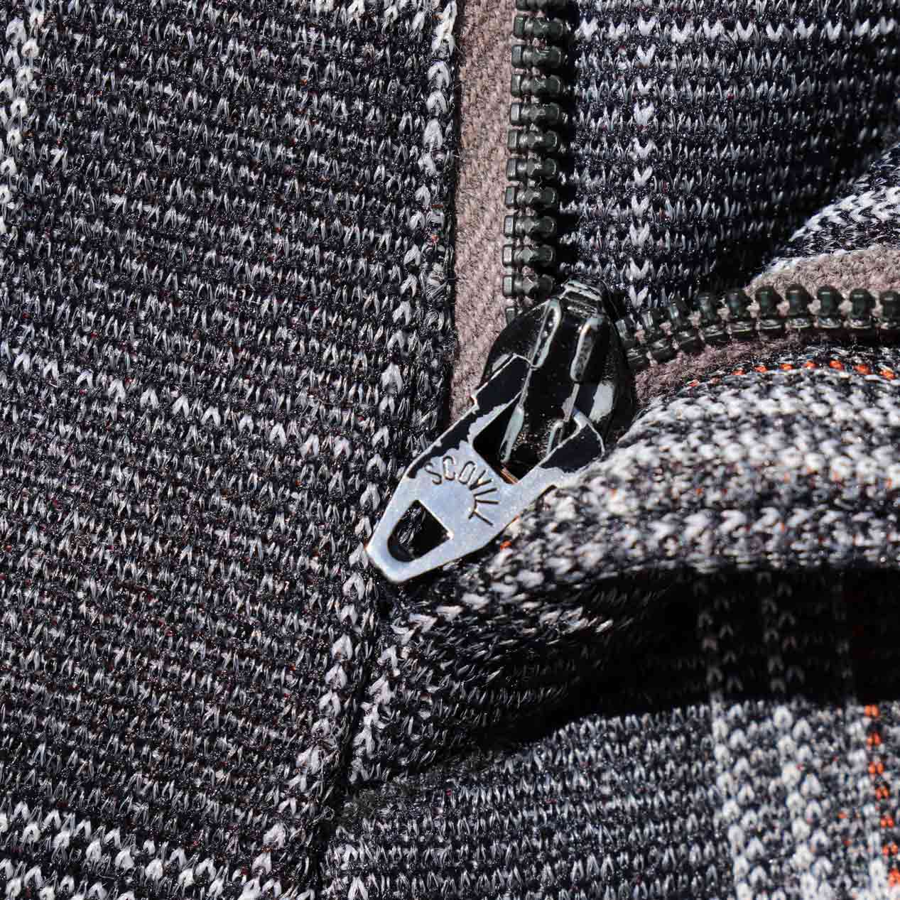 フロントジップはSCOVILL、破損はなくスムーズに開閉します。