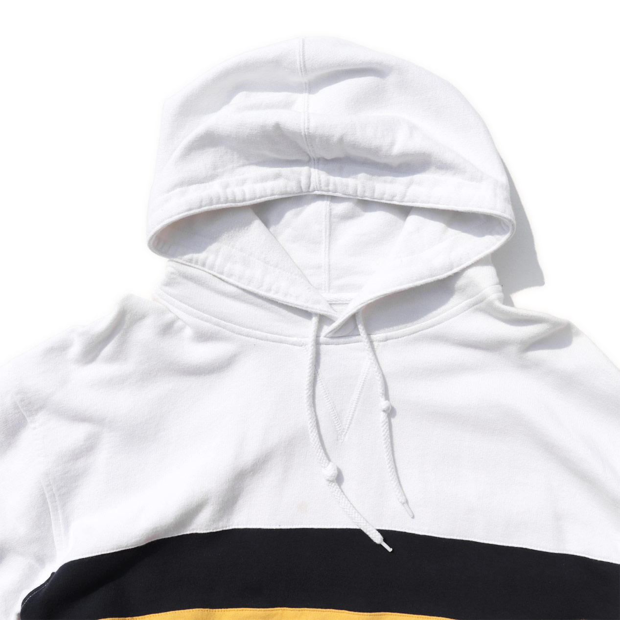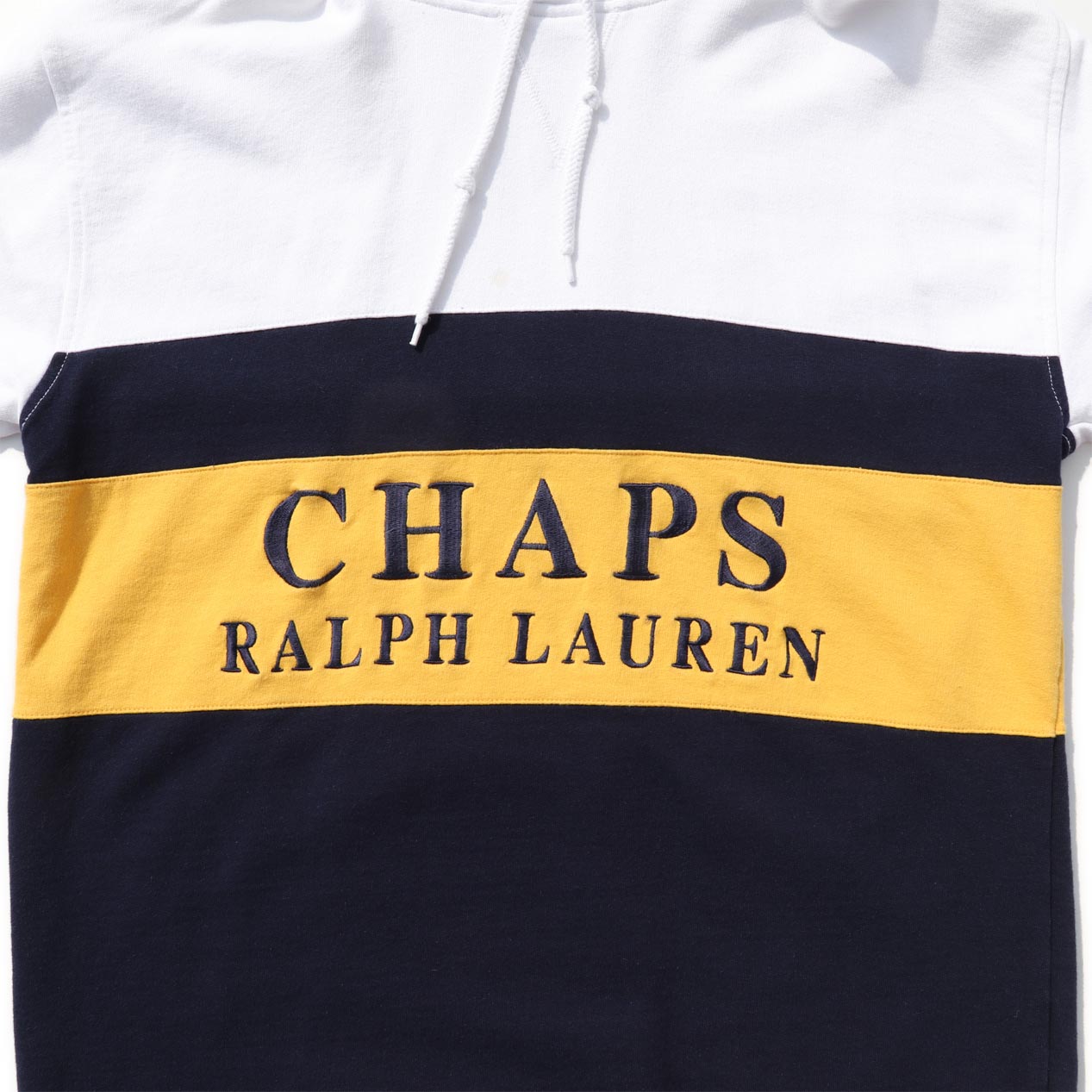 MODEL : CHAPS RALPH LAUREN プルオーバーパーカー MANUFACTURE : Made In Pakistan AGE : 90's SIZE : M COLOR : ホワイト×ネイビー×イエロー MATERIAL : コットン 100% COMMENT : 90年代、チャップスのプルオーバーパーカーです。
