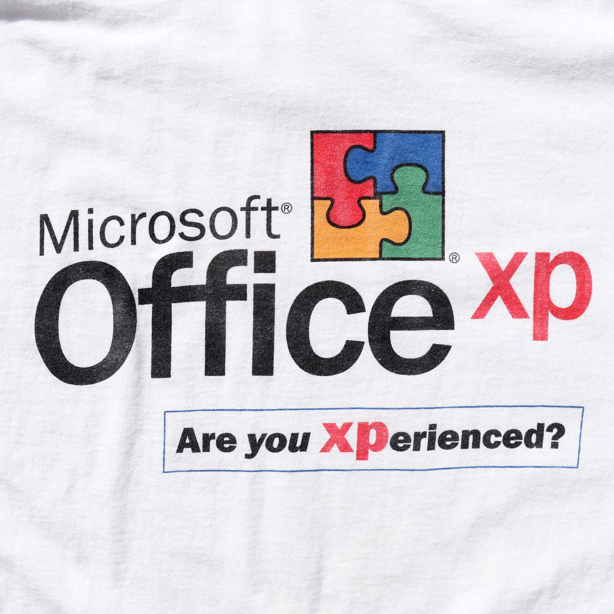 MODEL : MICROSOFT OFFICE XP Tシャツ MANUFACTURE : Made In Honduras AGE : 00's SIZE : XL COLOR : ホワイト MATERIAL : コットン 100% COMMENT : 00年代、マイクロソフトのプリントTシャツです。