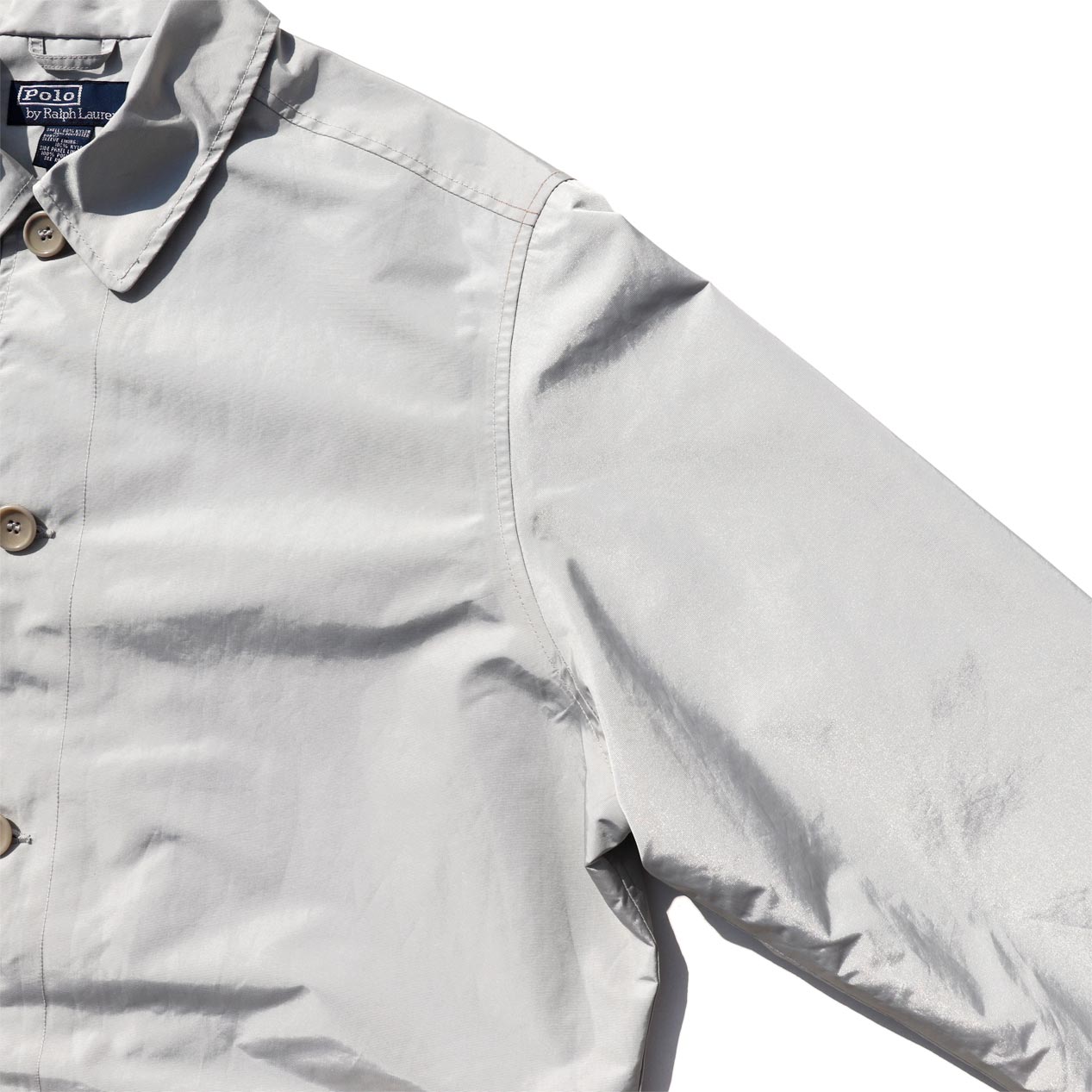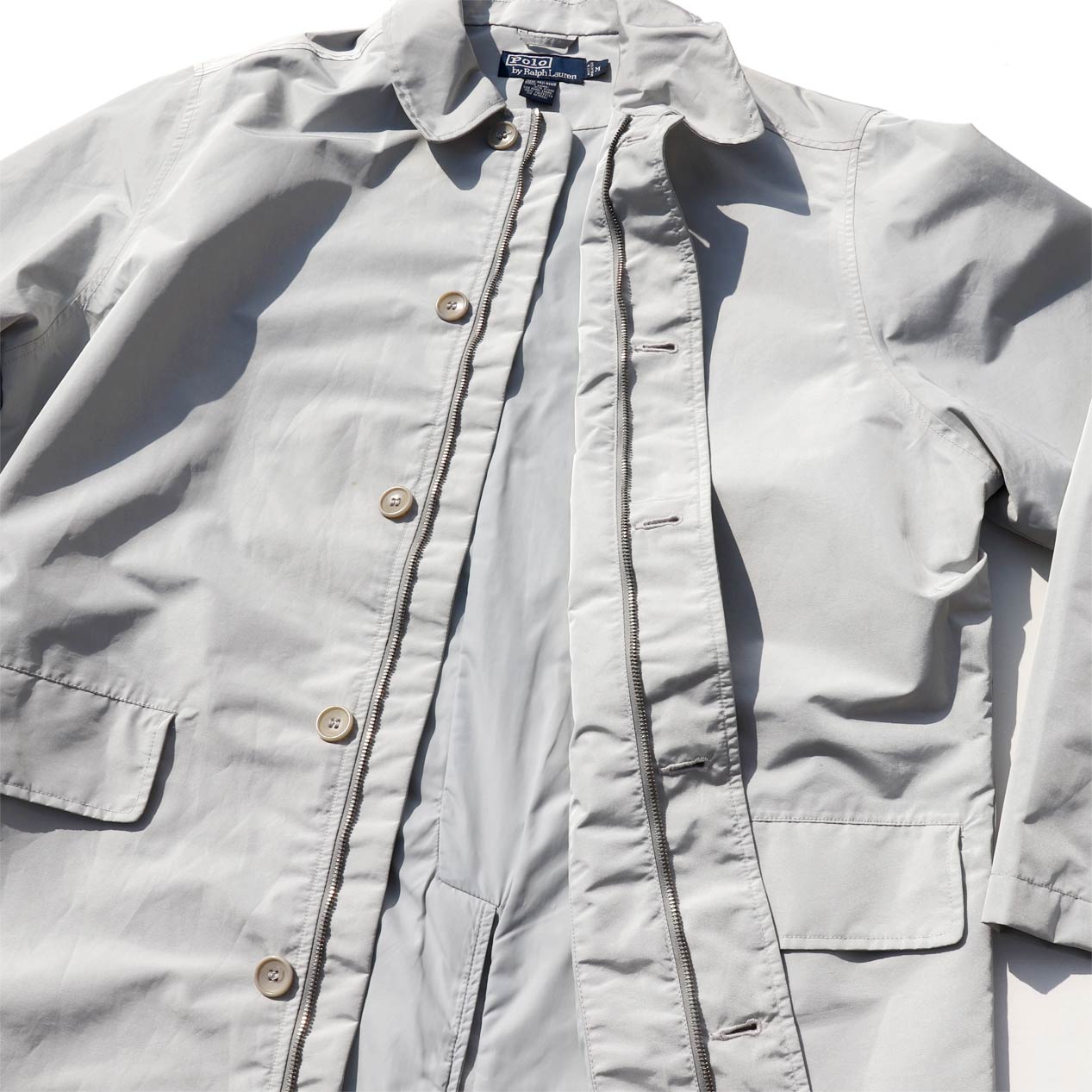 MODEL : POLO RALPH LAUREN GORE-TEX ステンカラーコート MANUFACTURE : Made In Bangladesh AGE : 90's~ SIZE : M COLOR : ライトグレー MATERIAL : 表地 : ナイロン 60% ポリエステル 40% / 裏地 : ナイロン 100% COMMENT : 90年代~、ポロラルフローレンのステンカラーコートです。