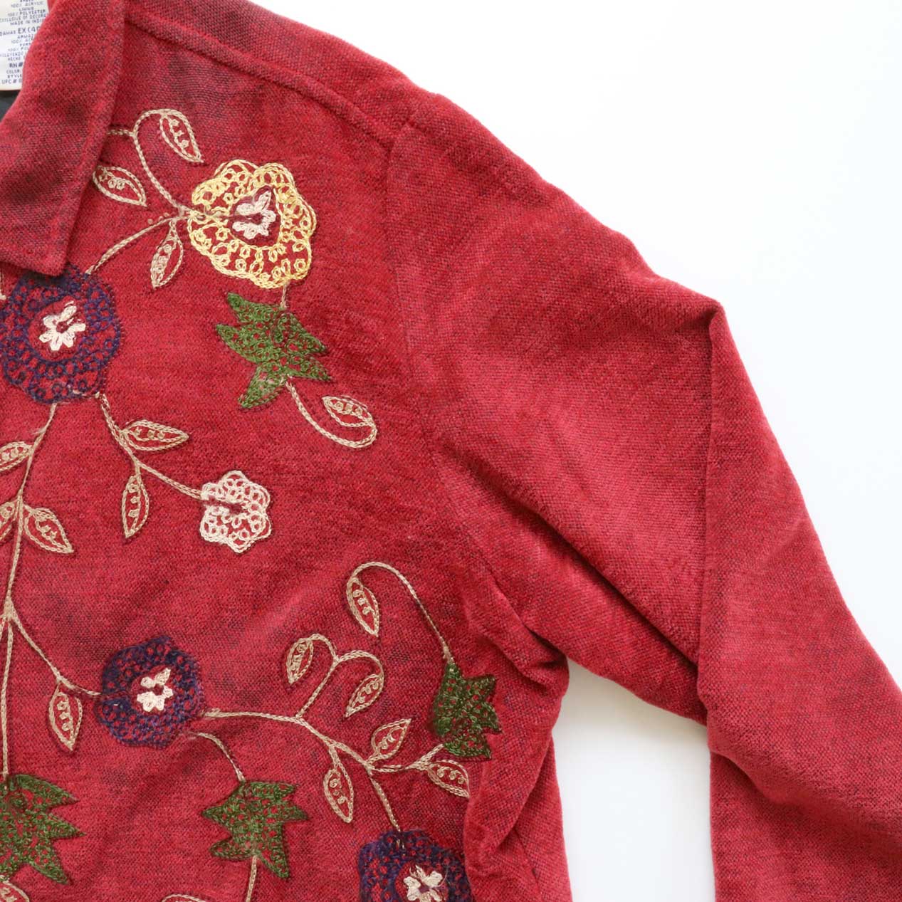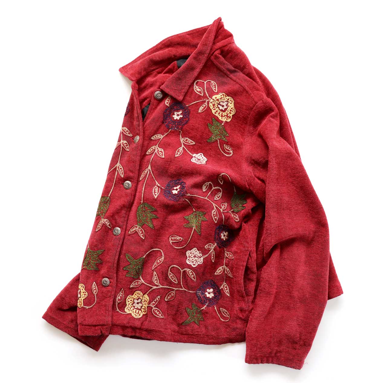 クレイジーな花柄刺繍がいかにもホワトスタッグらしい一枚。