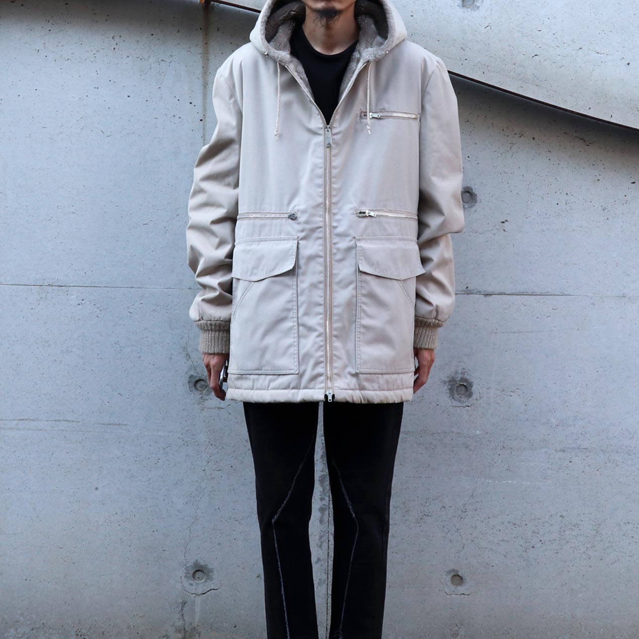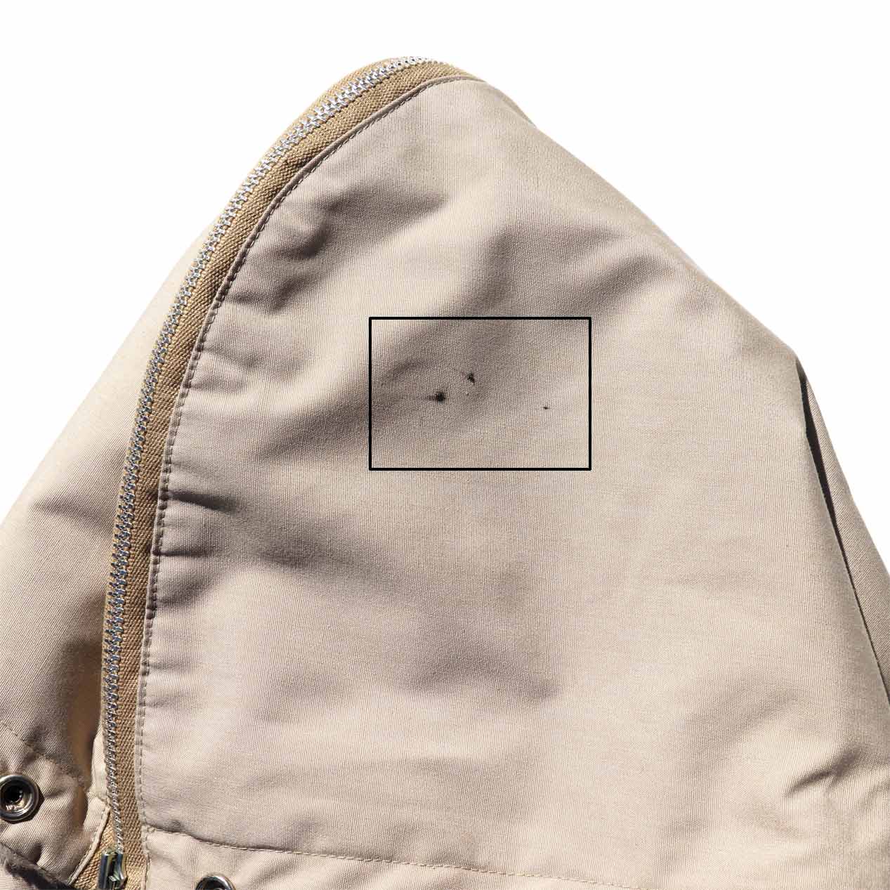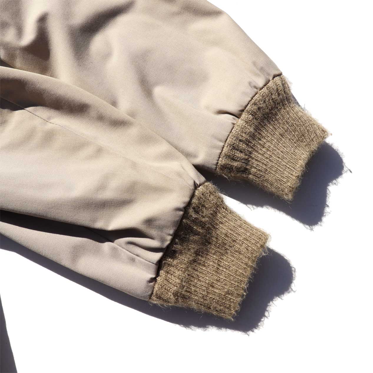 シャリ感のあるポリエステル/コットンクロス、見頃ボアライナー、袖裏中綿キルティング。