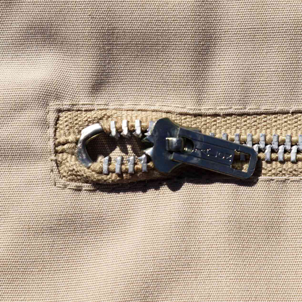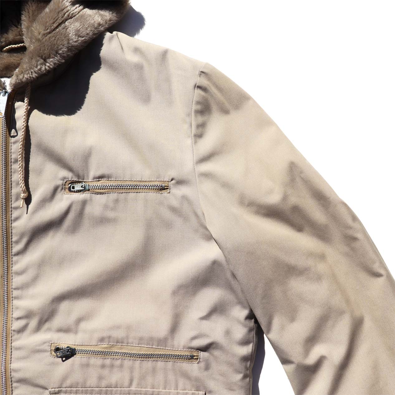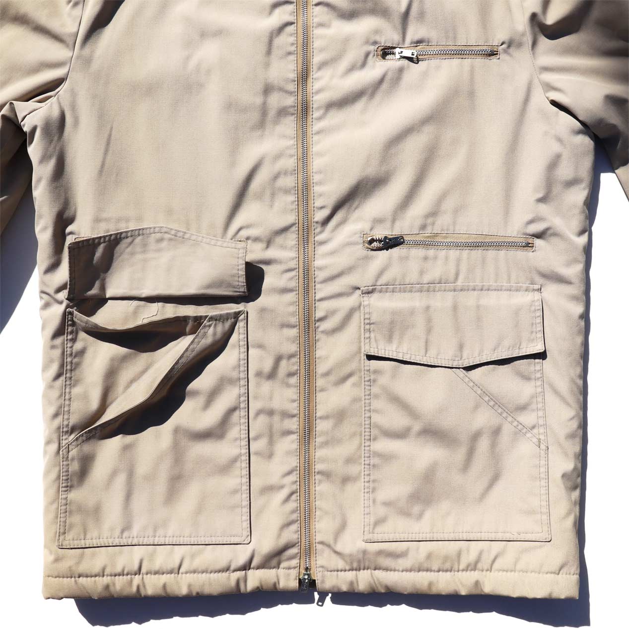 シャリ感のあるポリエステル/コットンクロス、見頃ボアライナー、袖裏中綿キルティング。