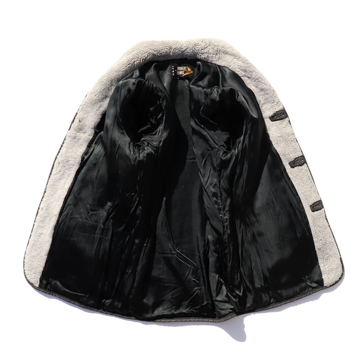 MODEL : ROBERT LEWIS USA製 ショールカラーボアコート MANUFACTURE : Made In U.S.A. AGE : 70's SIZE : 40 COLOR : グレー系 MATERIAL : --- (おそらくアクリル系) COMMENT : 70年代、ROBERT LEWISのショールカラーボアコートです。