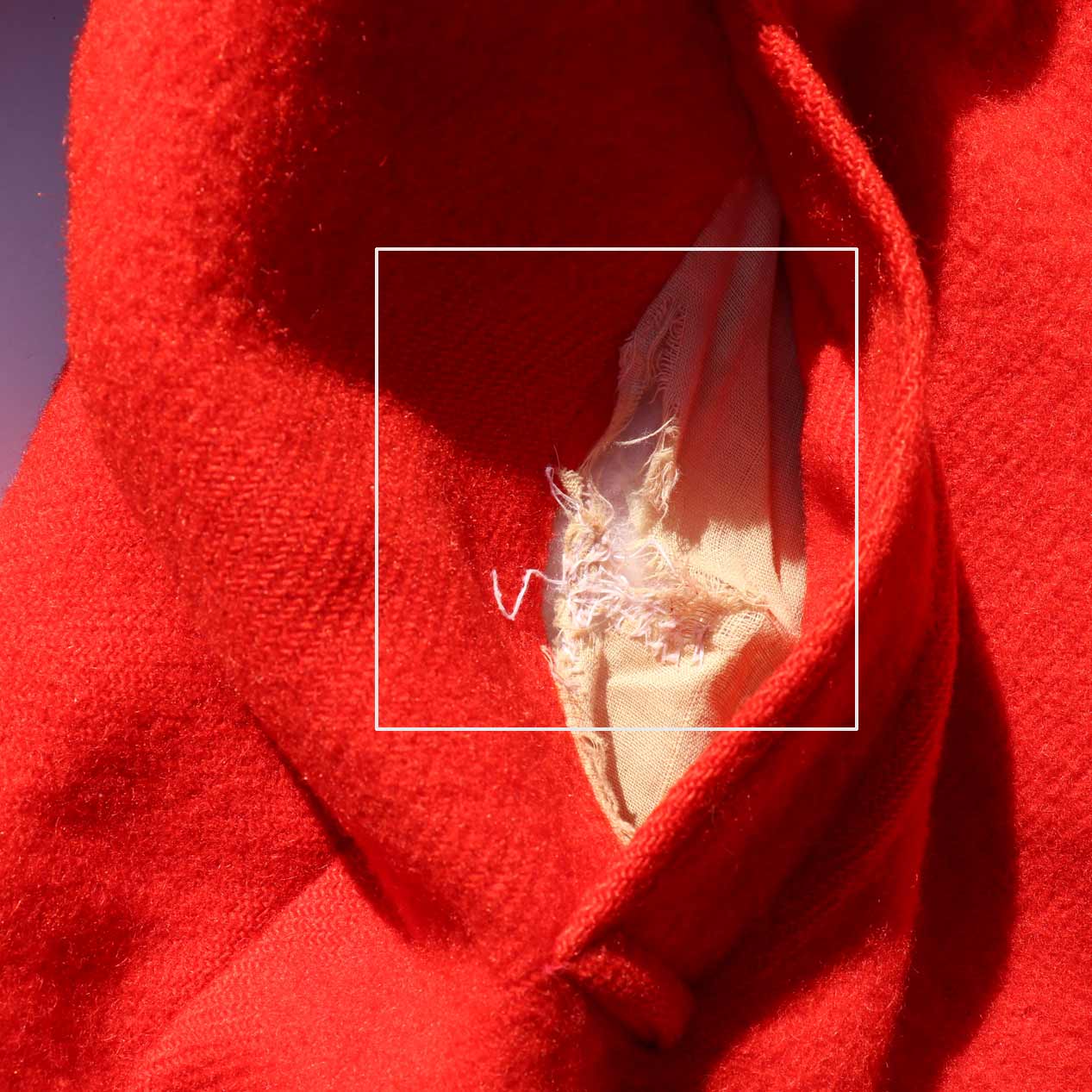 ・裏面 : フード裏に破れ
