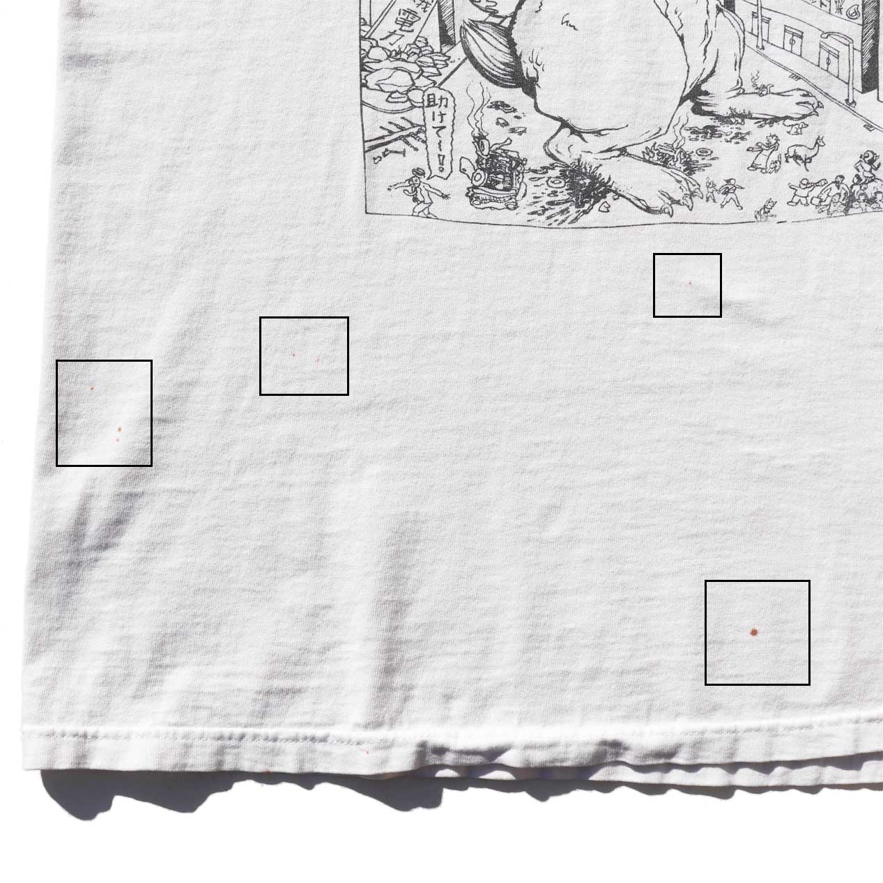 ・フロント、バック、袖 : 斑点状の染み汚れ